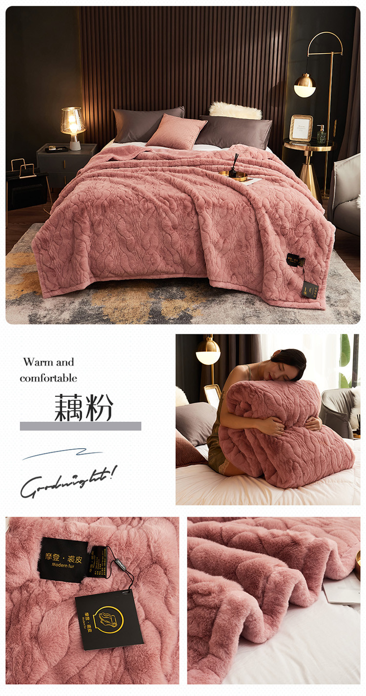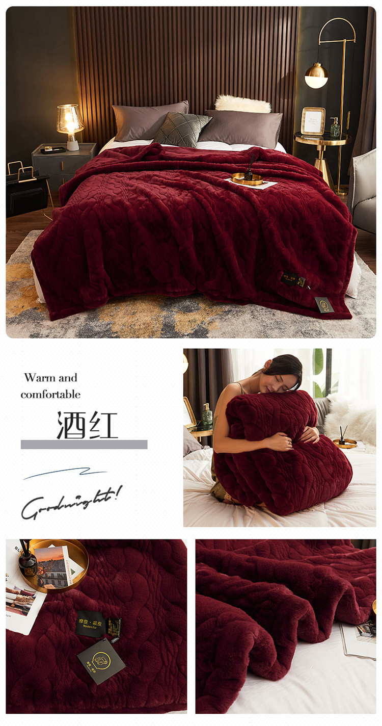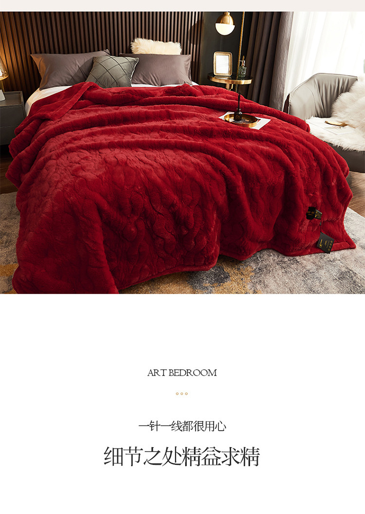 (总)凯轩毛毯网销专供 2026新款仿刺绣双层加厚压花云毯,豆沙红,绛紫色,孔雀绿,奶油咖,珊瑚粉,深灰色