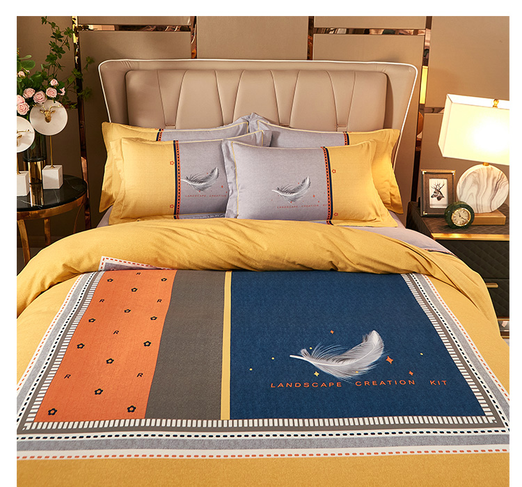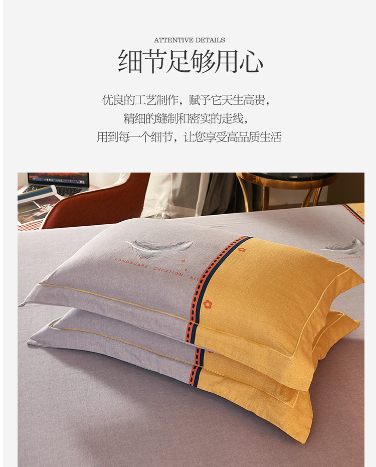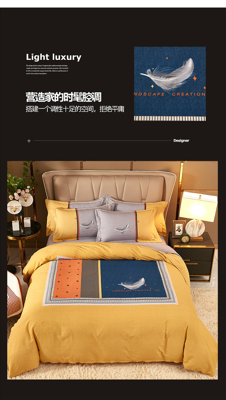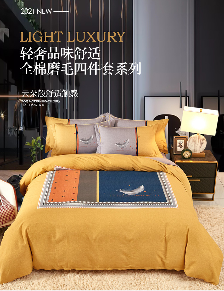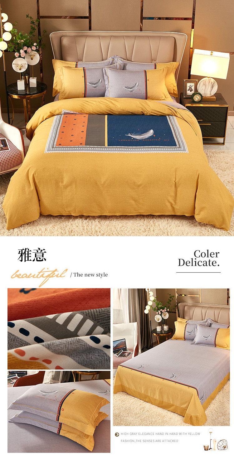 (总)雲归梦 2021新款全棉生态磨毛刺绣四件套,慕思-橙色,慕思-粉紫,慕思-灰,慕思-米黄,慕思-青绿,慕思-天蓝