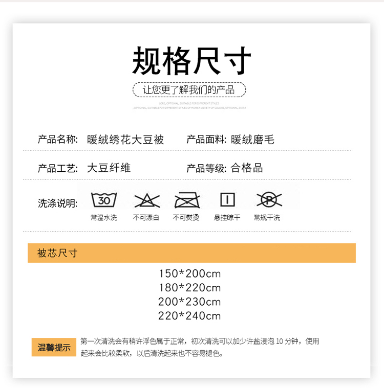 填充纤维种类: 大豆蛋白改性聚酯纤维