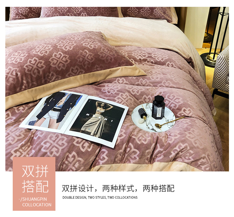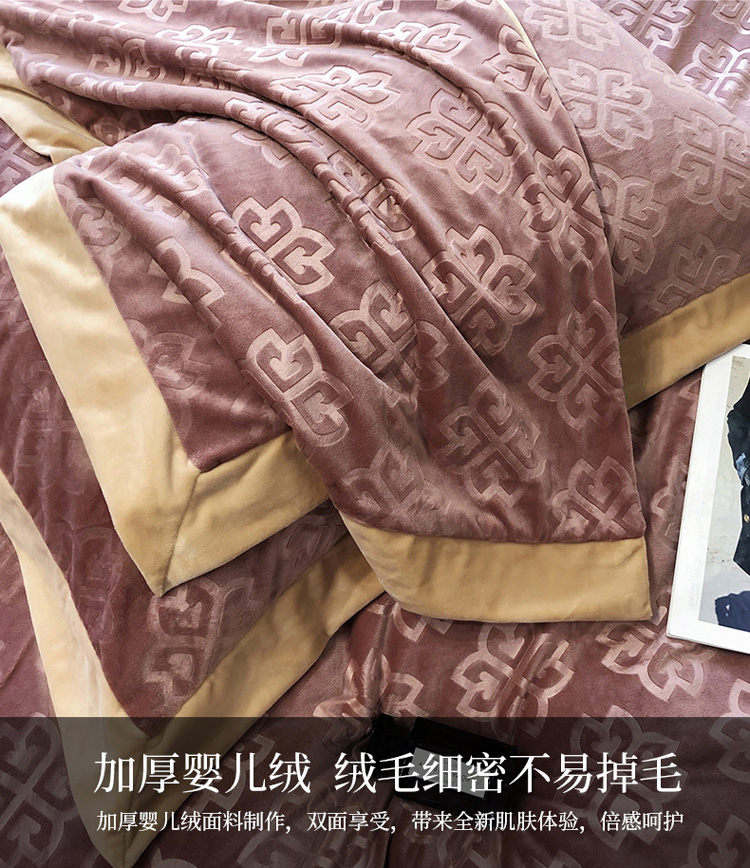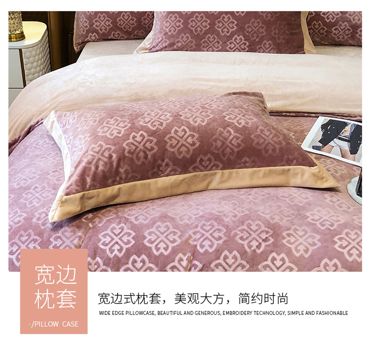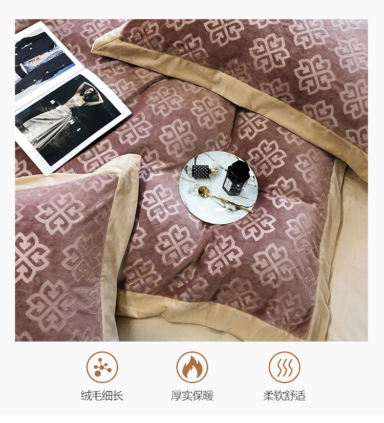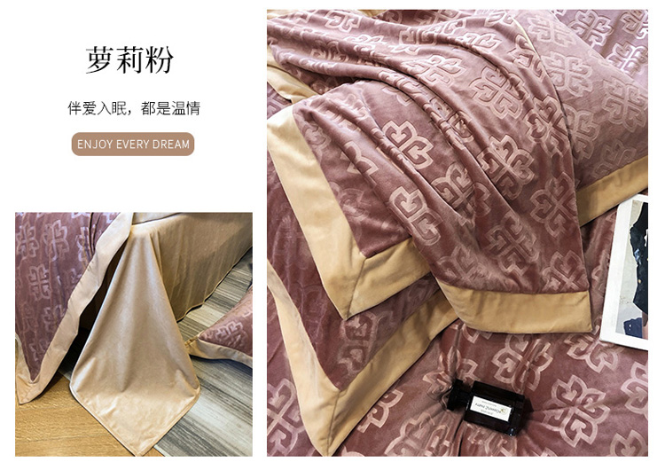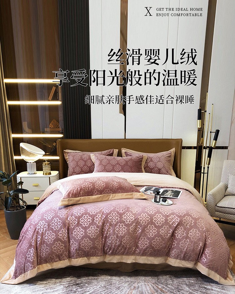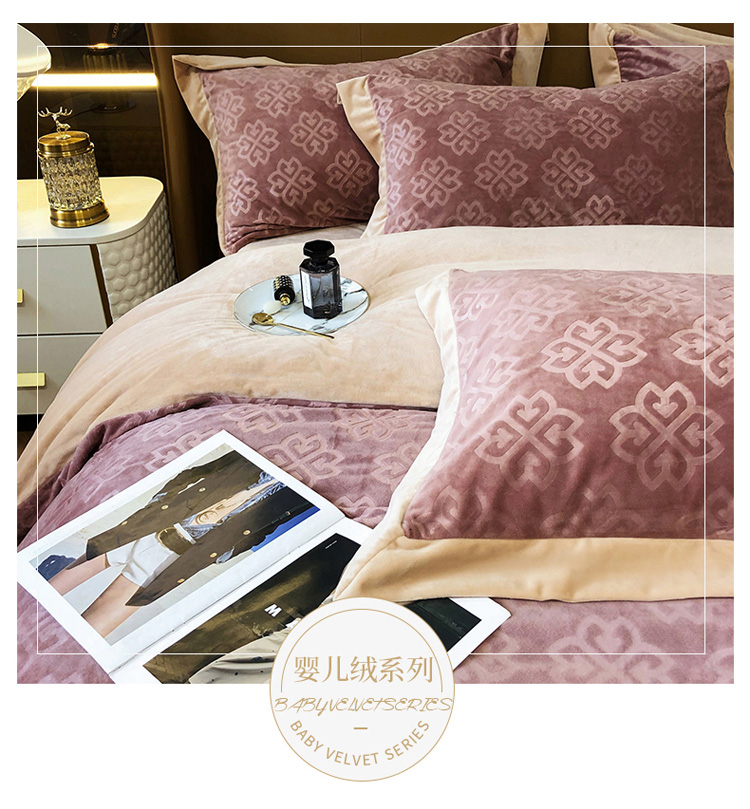 爱缦2021格调系列实拍230克婴儿绒四件套 萝莉粉