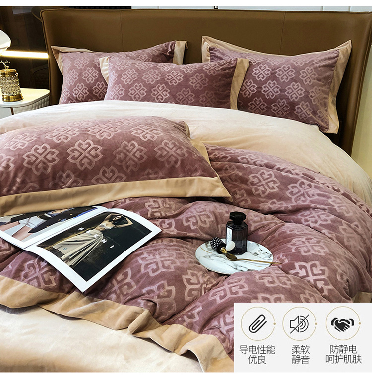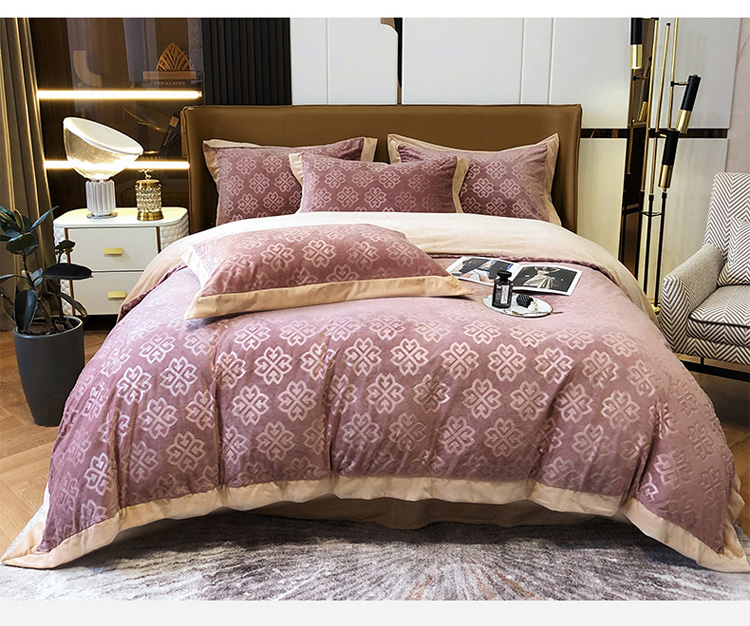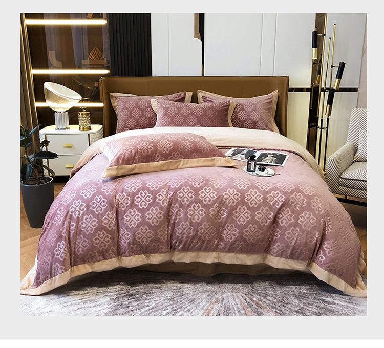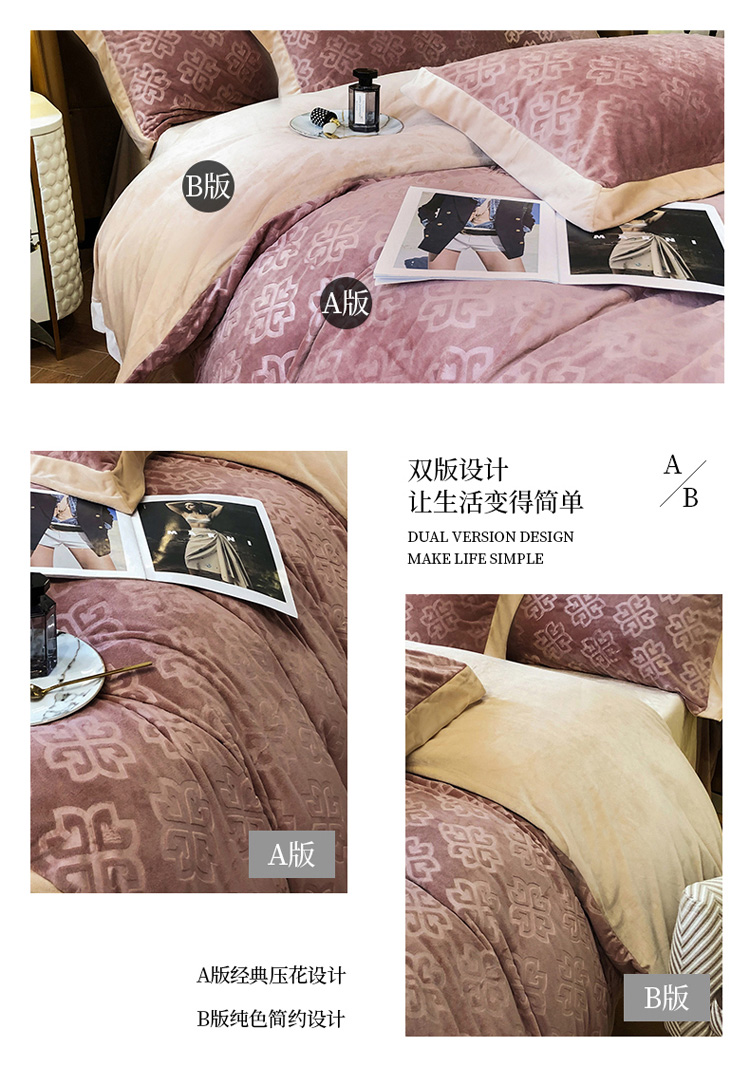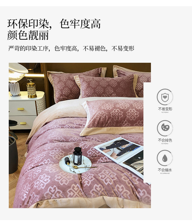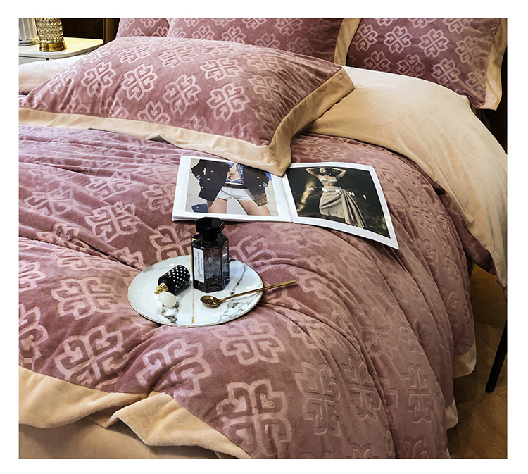 爱缦2021格调系列实拍230克婴儿绒四件套 萝莉粉