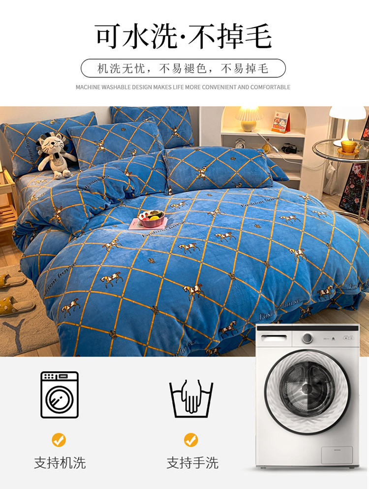 商品名称:金爱家 2021新款跑量款牛奶绒四件套 马到成功