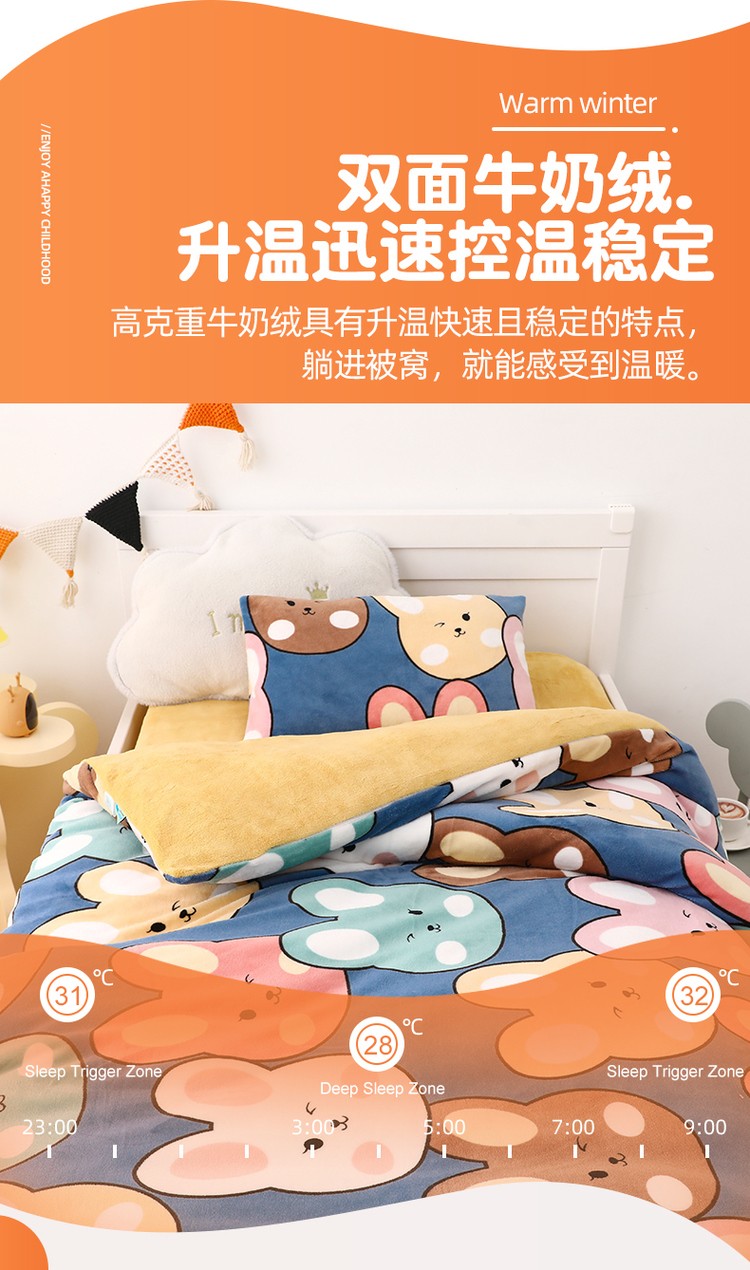 (总)鱼宝 2022新款儿童双面牛奶绒冬被,班尼熊,滴滴车队,海盐草莓,桔子,恐龙先生,兔子草莓,小兔姑娘