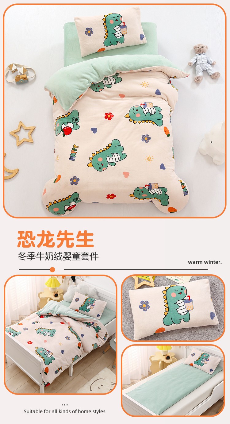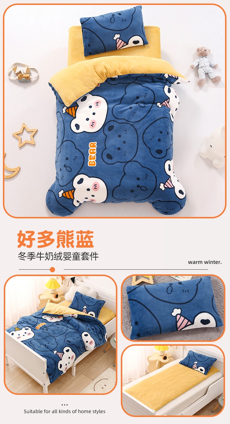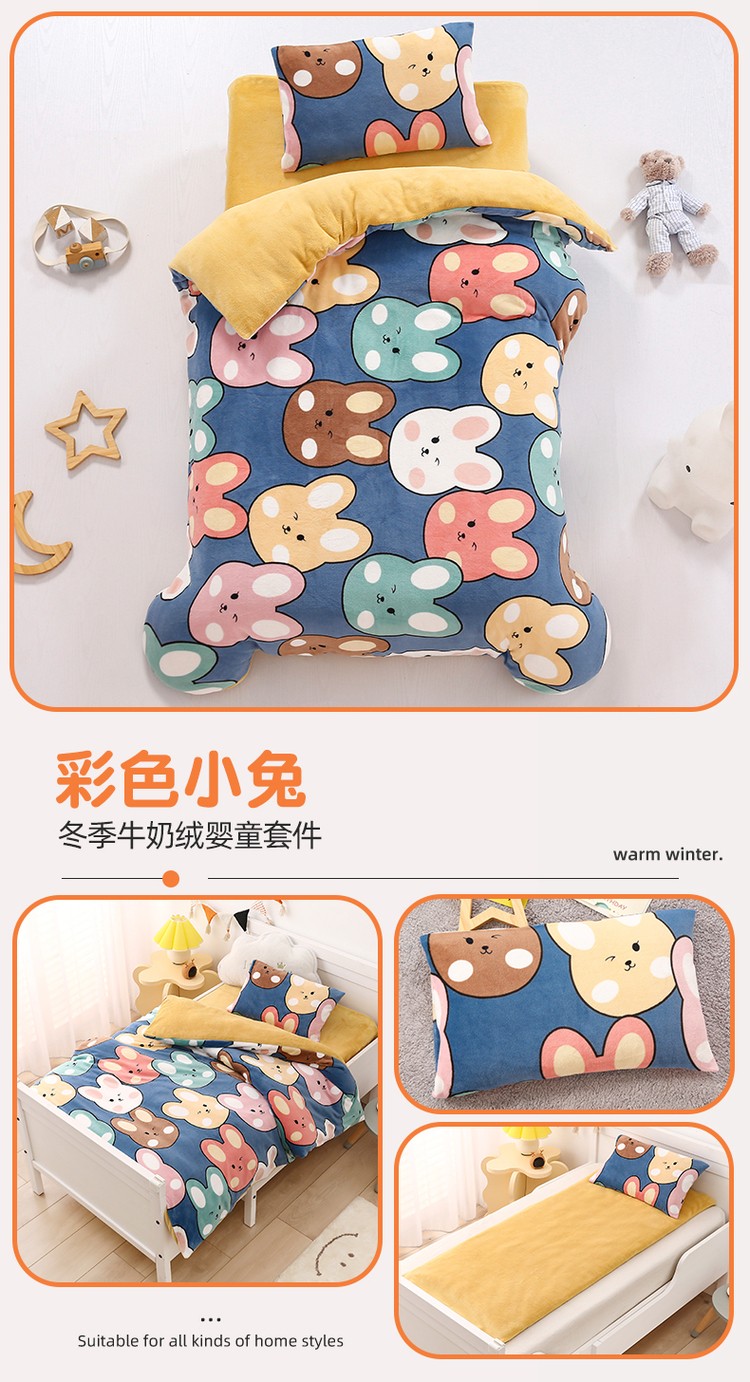 (总)鱼宝 2025新款大版牛奶绒三件套六件套多件套-彩绘系列,爱丽丝兔,卡通挖机,小巴士,小象宝宝,小熊鸭鸭,熊猫圆圆,一只企鹅,月球王子
