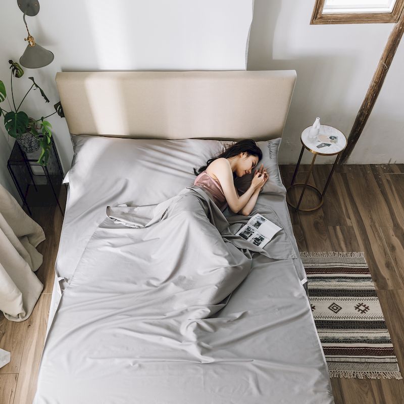 涞澳家纺 2019新款60支长绒棉隔脏睡袋 S冰灿银
