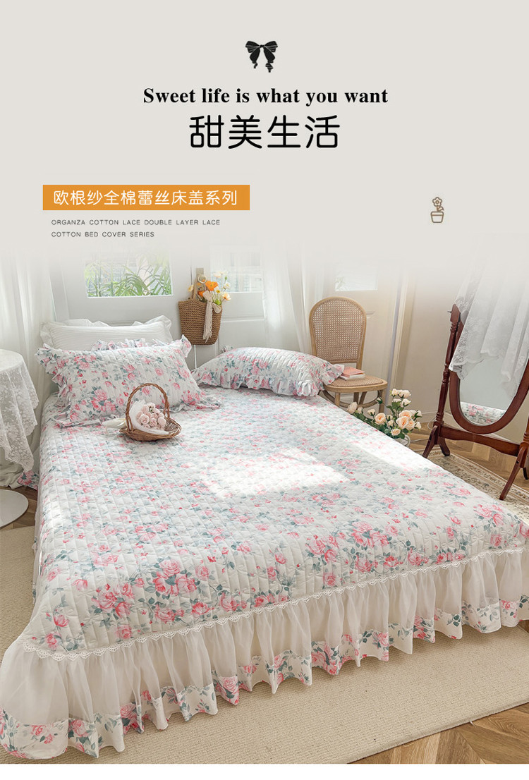 菊上家纺 2022新款仙女款欧根纱蕾丝床盖 丹兰