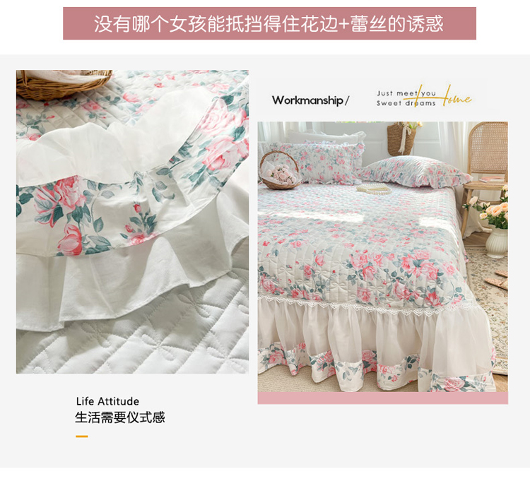 (总)菊上家纺 2023秋冬新品法式花边全棉单床盖,小欢喜,花千骨,小幸运,安妮紫,布拉格,玛雅灰,罗蔓莉,恋花影,卡町绿,薇薇安,玫瑰粉,郁金香,白玫瑰,春光里,伊甸园,慕时光,玛丽娅,小时光