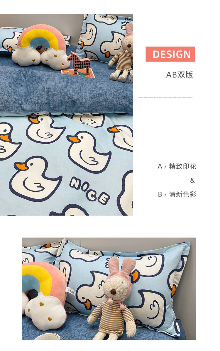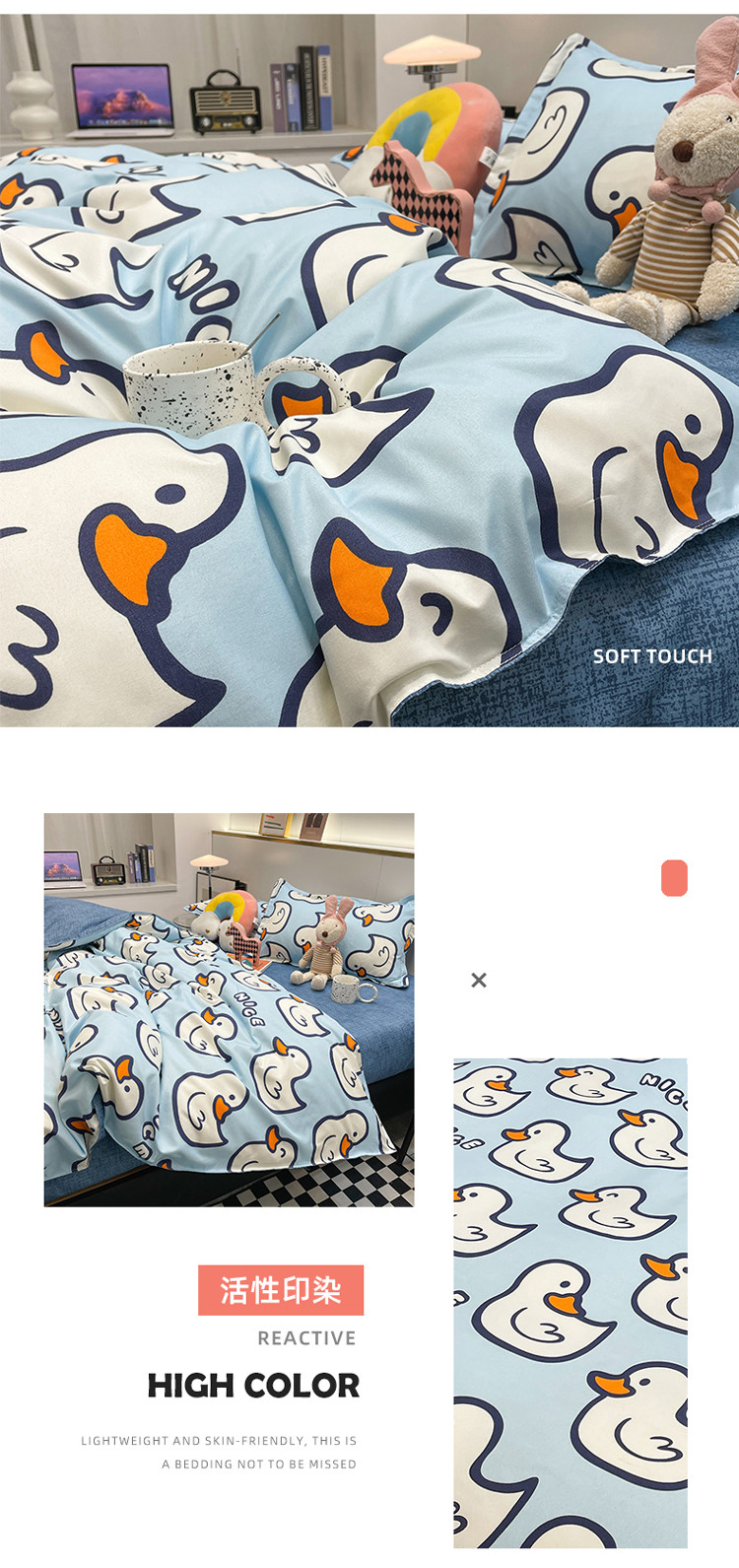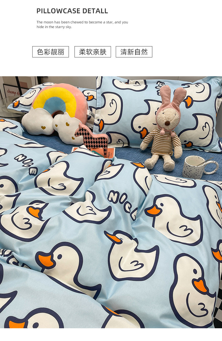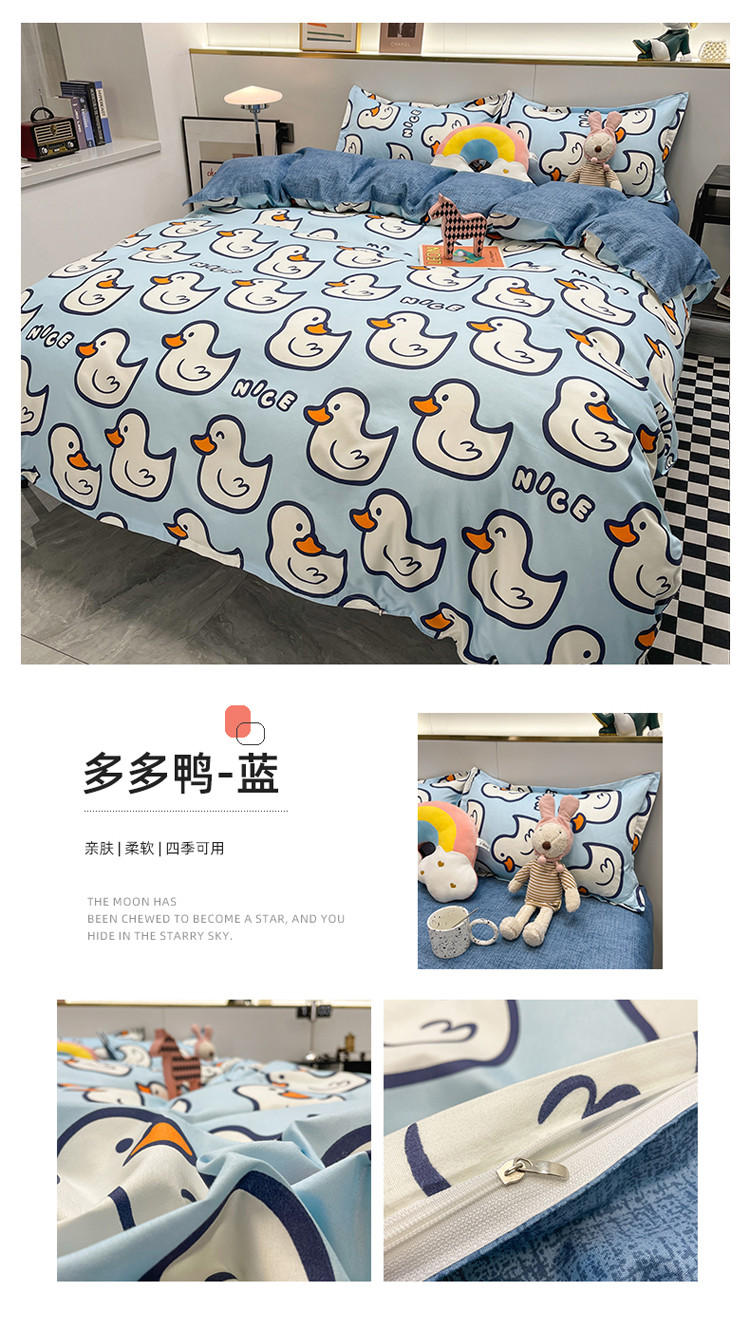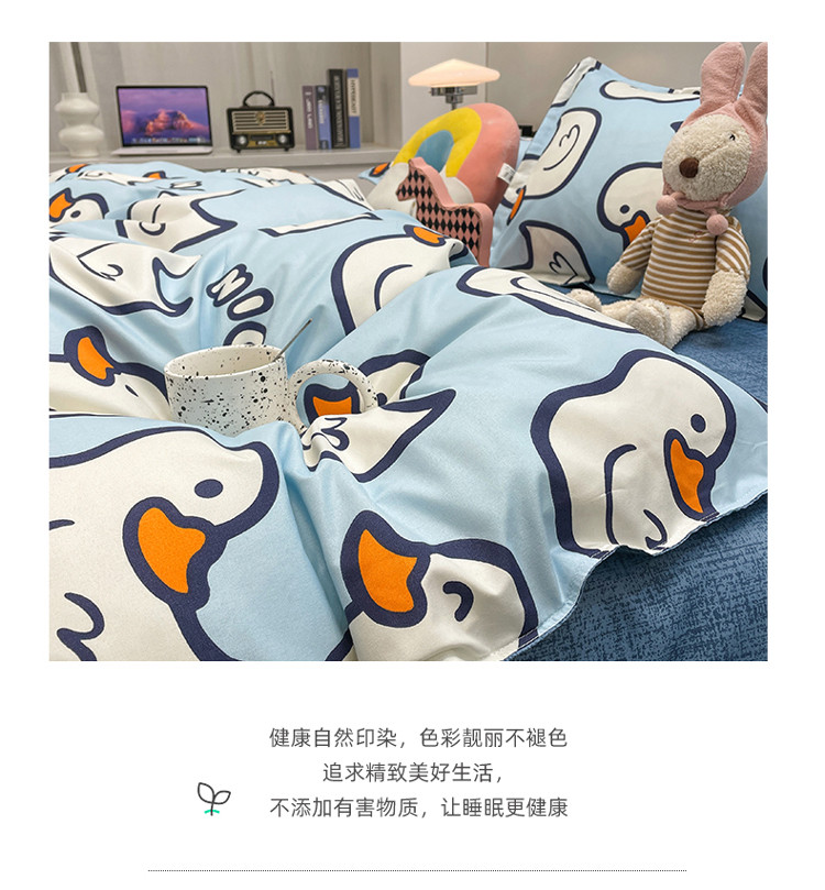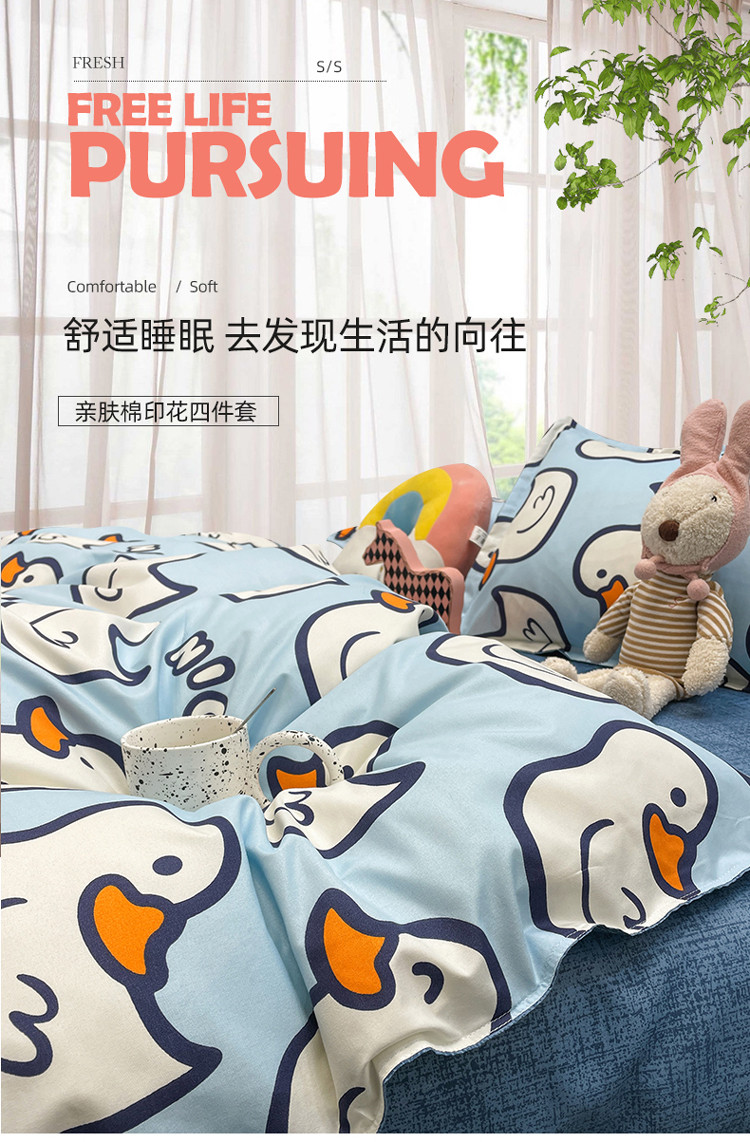 宏源家纺 2022新款亲肤棉印花四件套 多多鸭-蓝