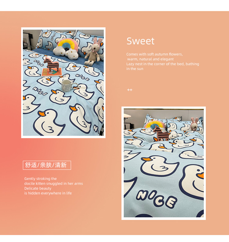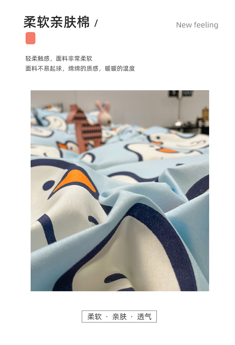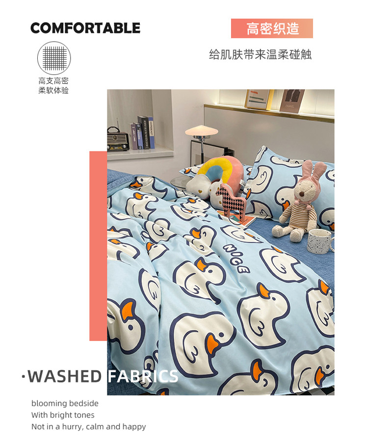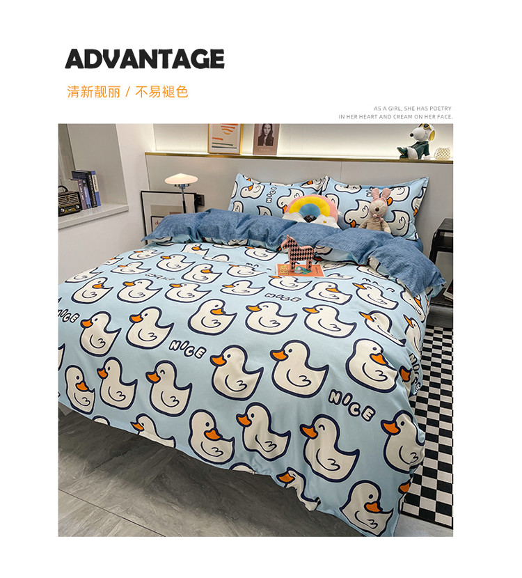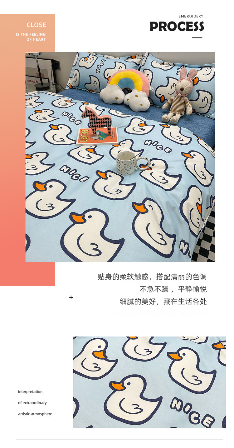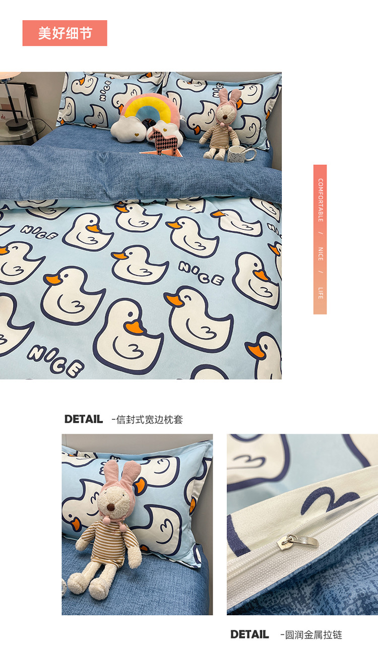宏源家纺 2022新款亲肤棉印花四件套 多多鸭-蓝
