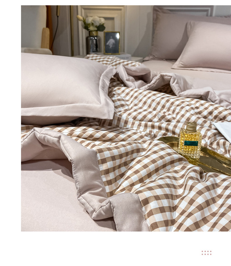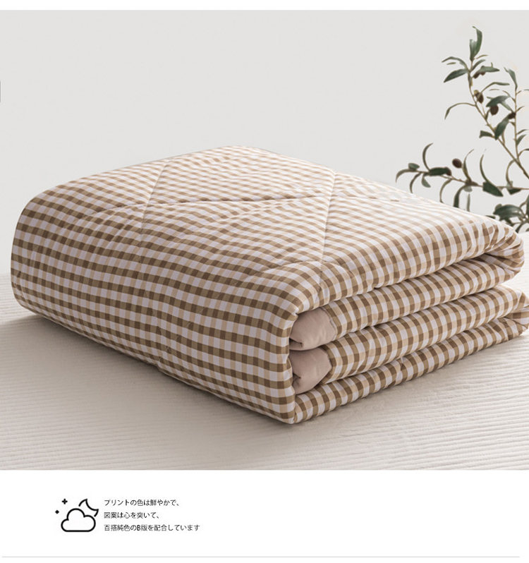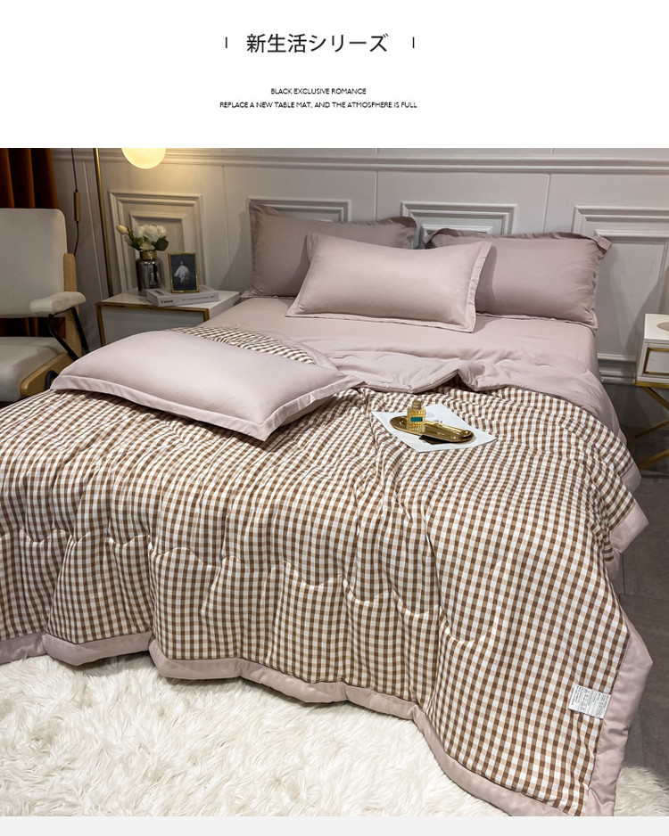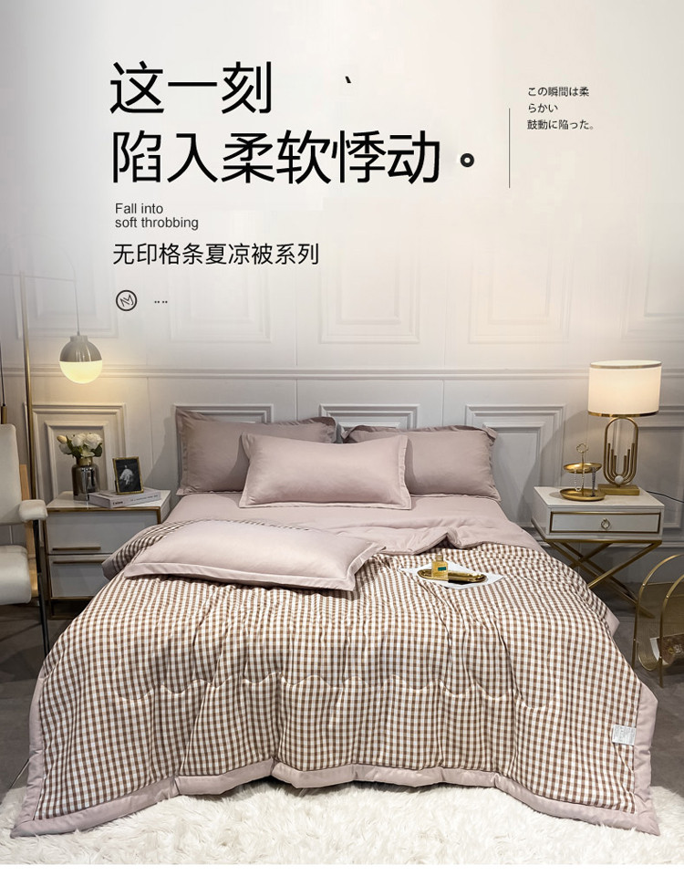 U被家纺 2022新款无印格条夏凉被【实拍图】 粉咖格