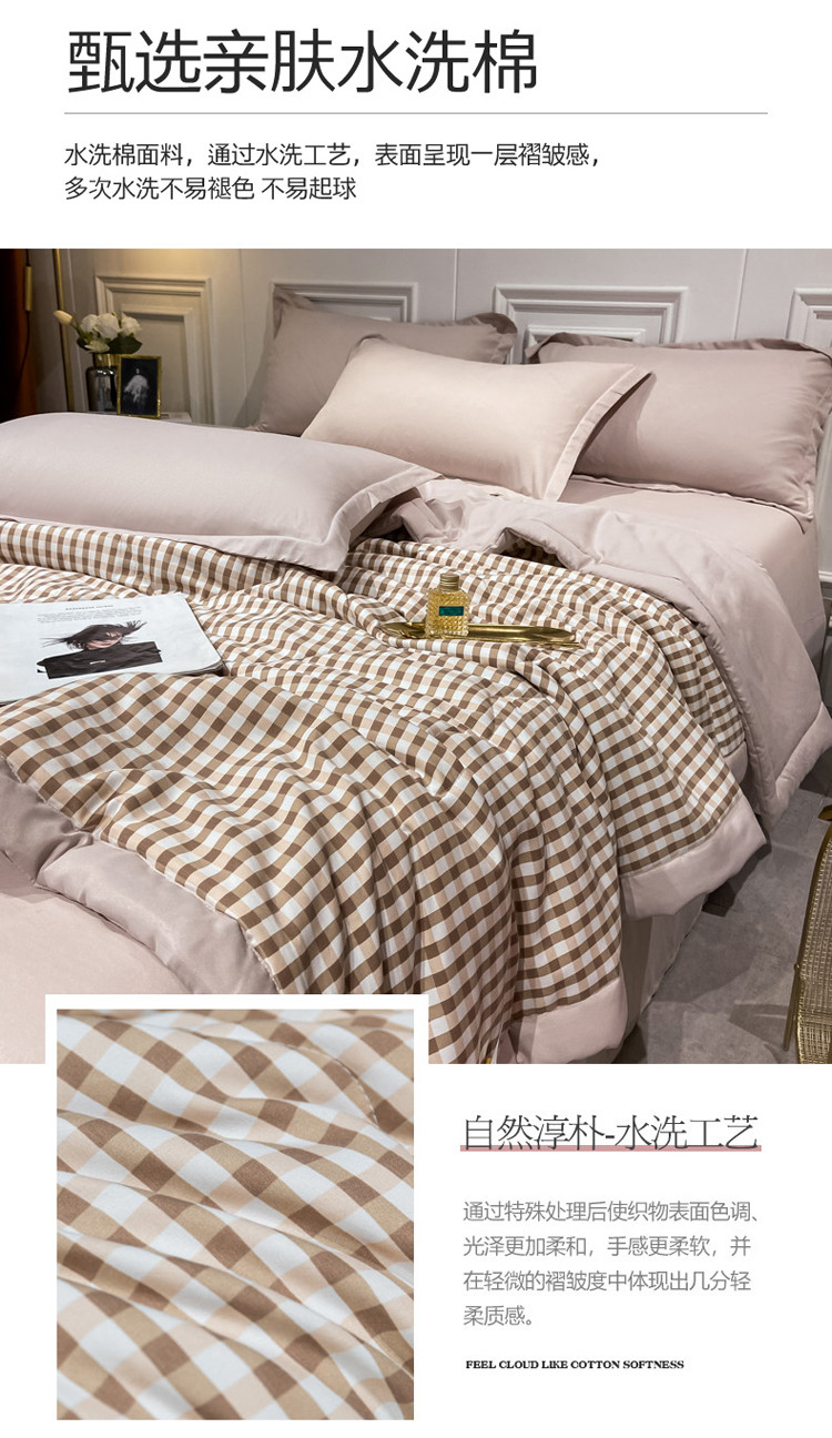 (总)u被 2025新款色织水洗夏被/夏凉被三件套/夏凉被四件套,可可咖,抹茶绿,嫩芽杏,骑士灰,松墨绿,桃夭粉,烟云绿,远山蓝