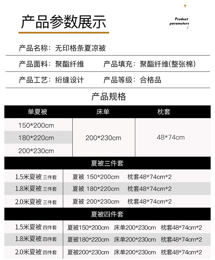 200*230cm四件套(夏被+枕套一对+床单一条)