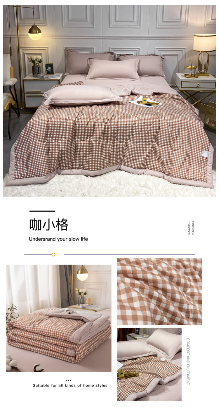 商品名称:U被家纺 2022新款无印格条夏凉被【实拍图】 粉咖格