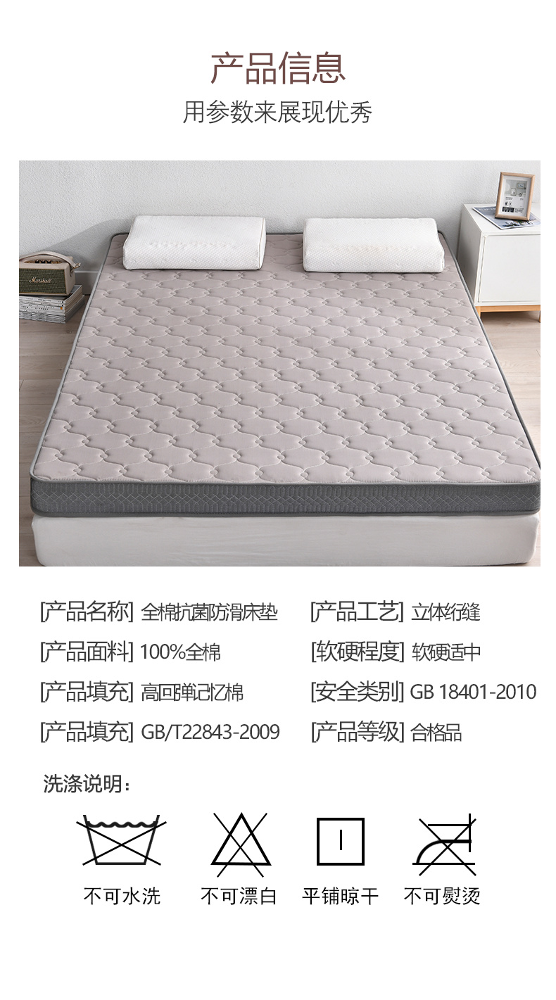 当前位置: 91家纺网 > 商品网购 > 床垫/床褥/床护垫 > 普通床垫 > (总)鑫钰 2023新款A类全棉抗菌记忆高回弹加厚立体床垫