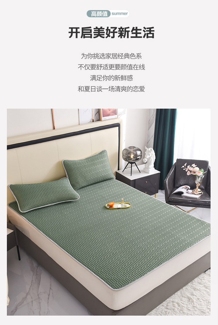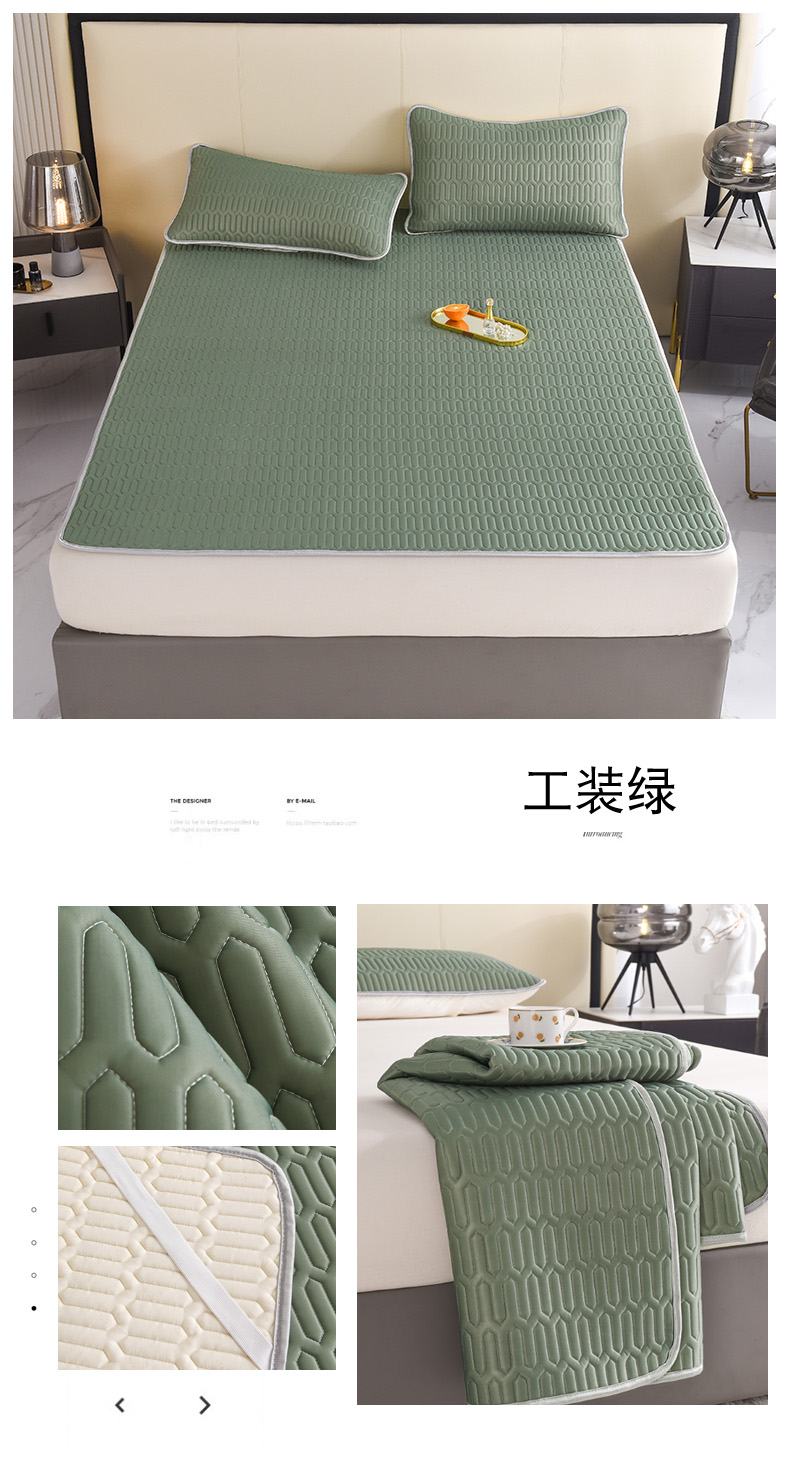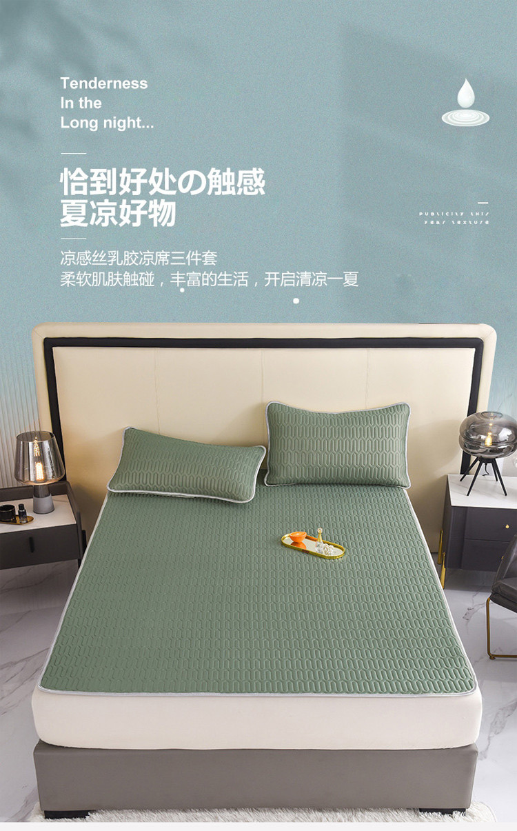 商品名称:寐居 2022新款纯色凉感丝乳胶凉席三件套 工装绿