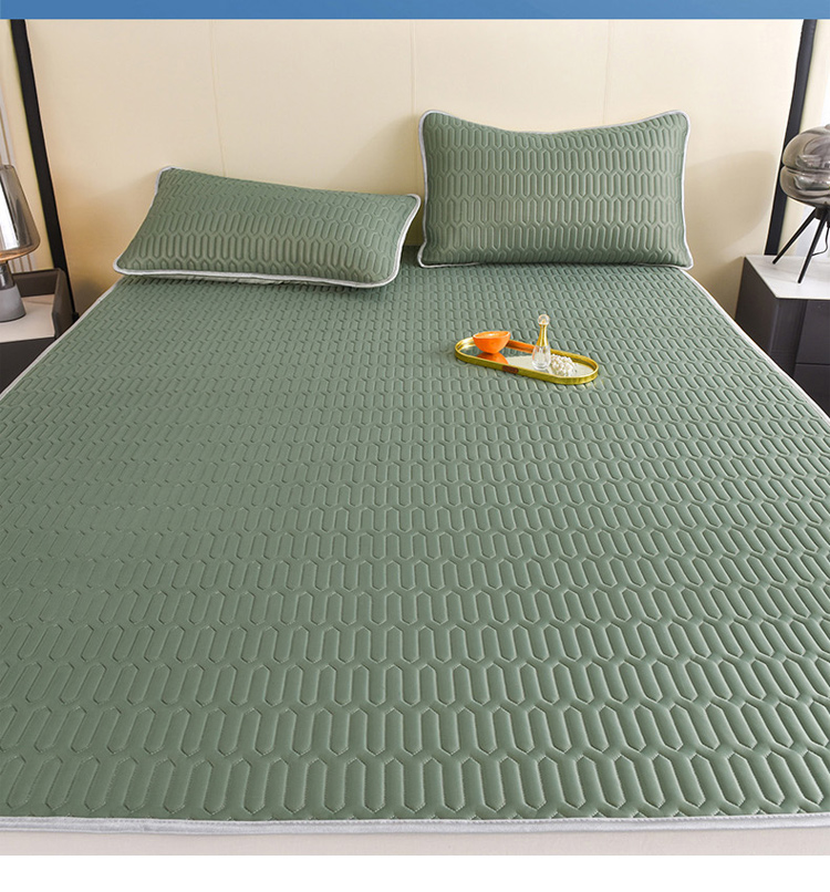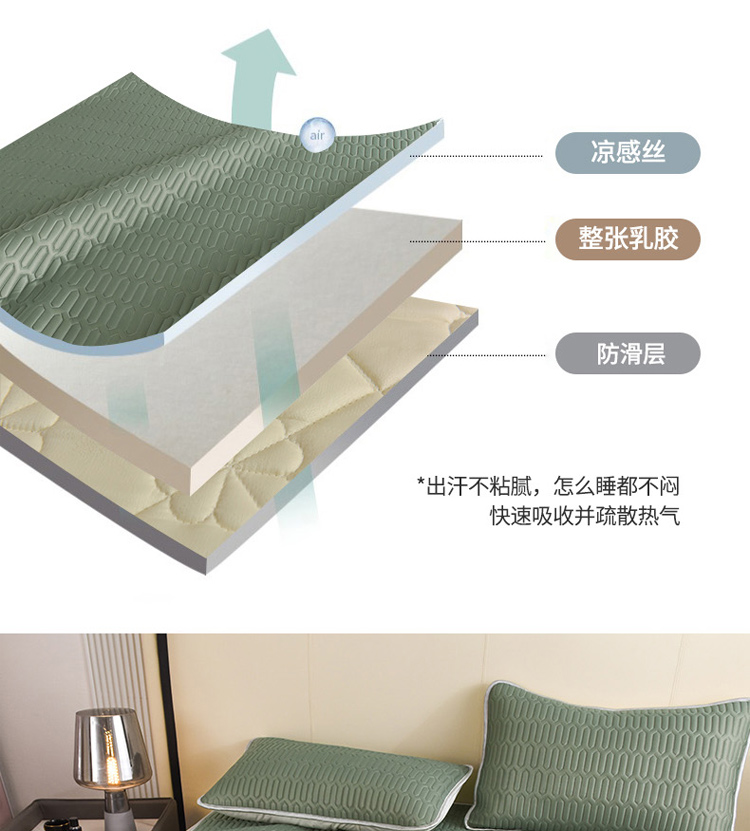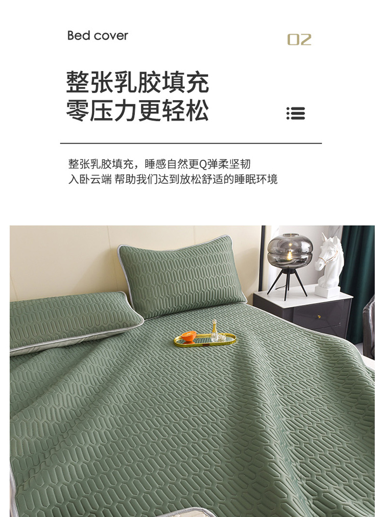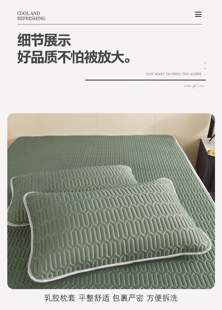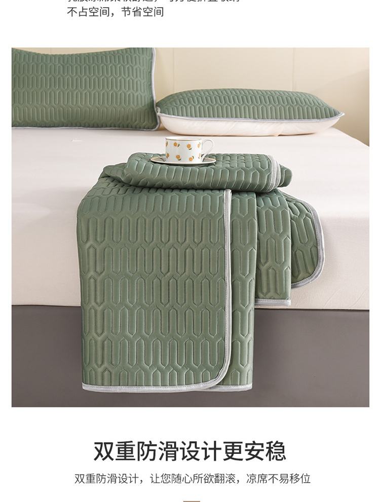 商品名称:寐居 2022新款纯色凉感丝乳胶凉席三件套 工装绿