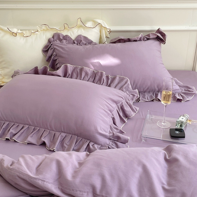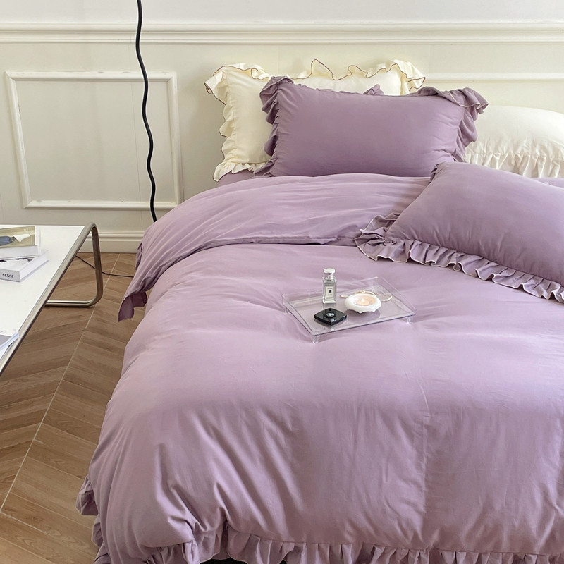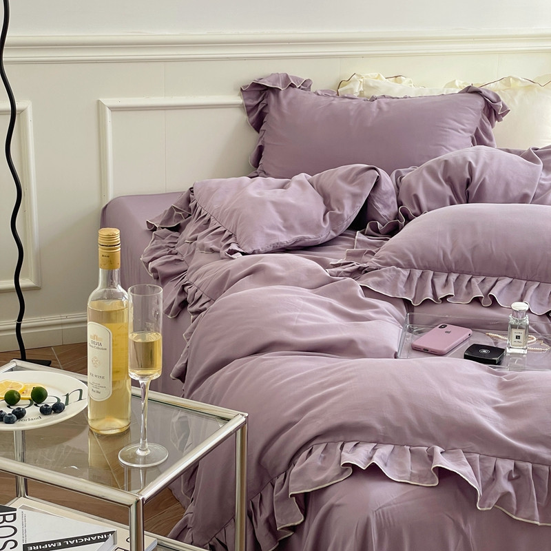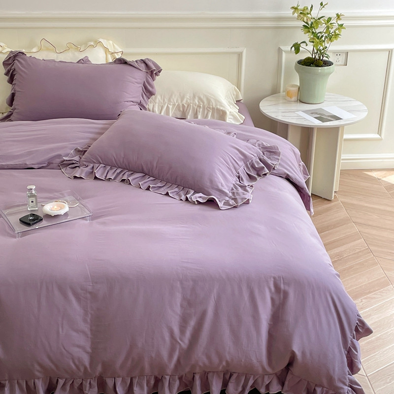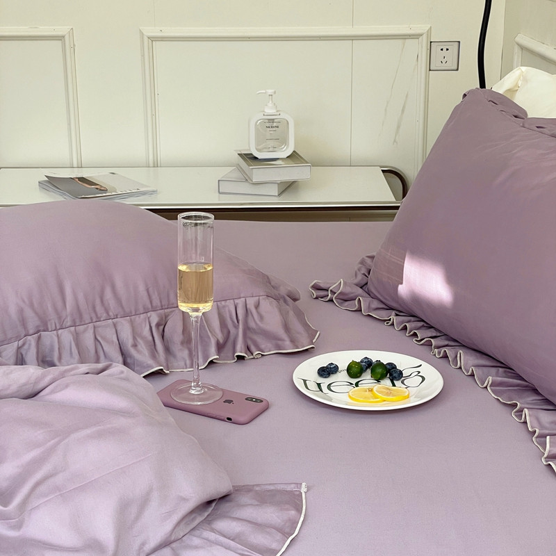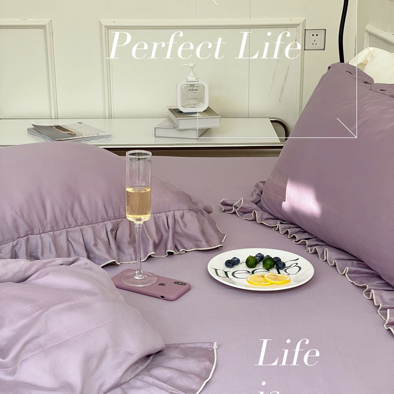 当前位置: 91家纺网 > 商品网购 > 床品套件 > 四件套 > 水洗棉四件套 > 时年 2022新款60长绒棉水洗轻磨毛花边款四件套 风信紫