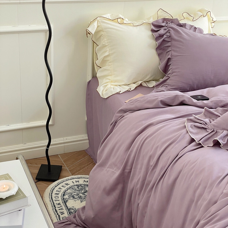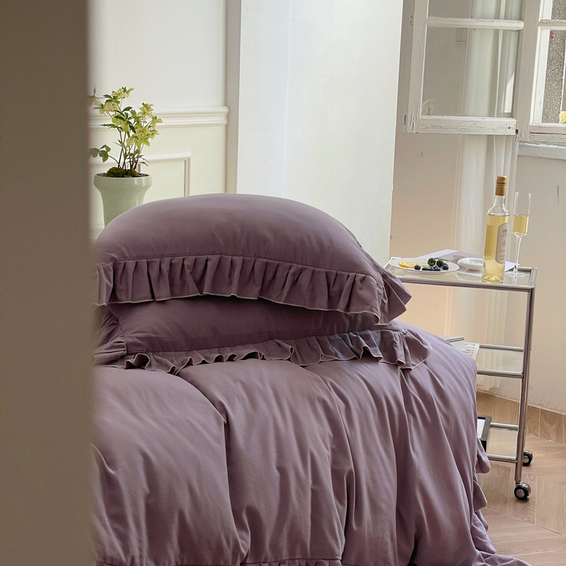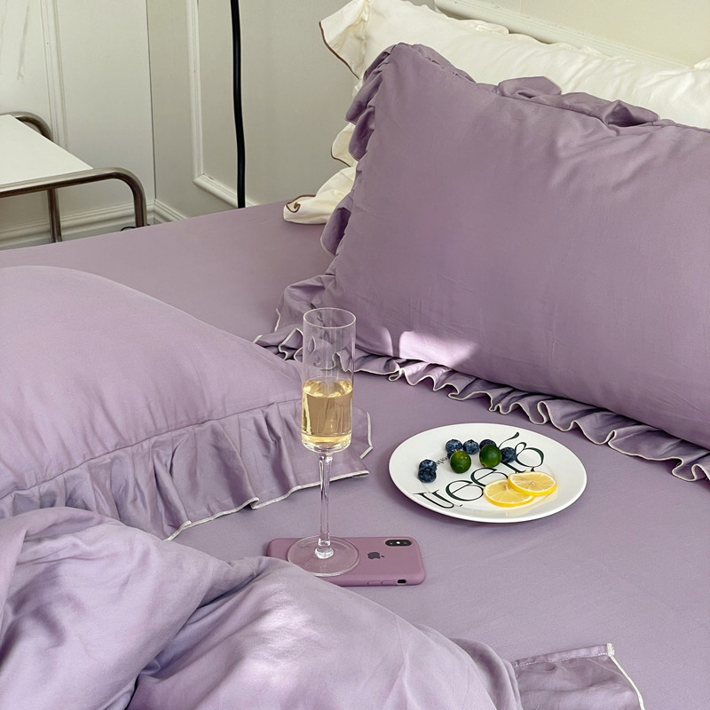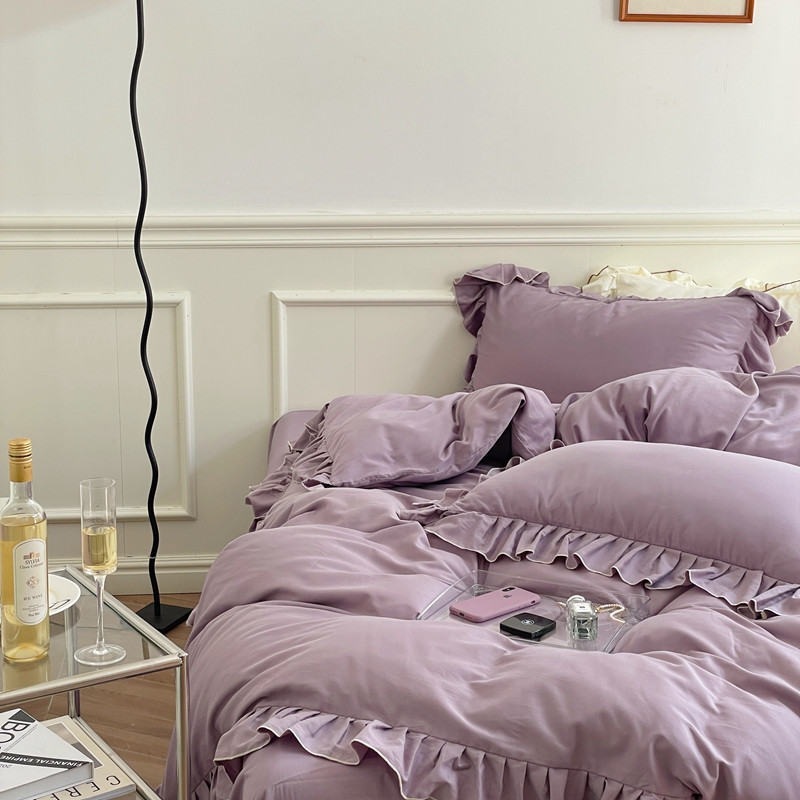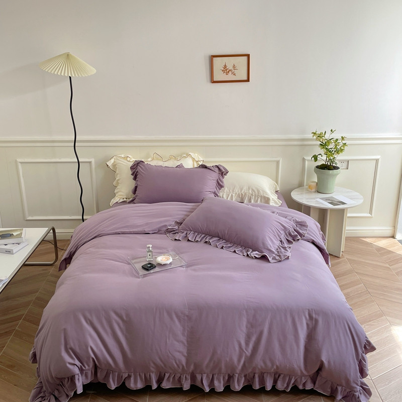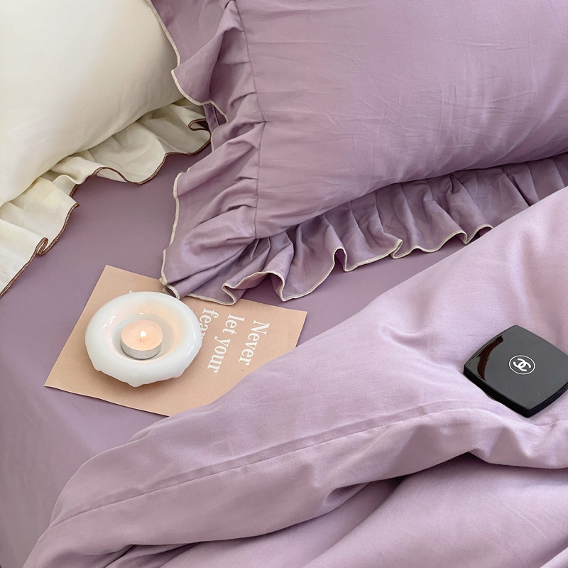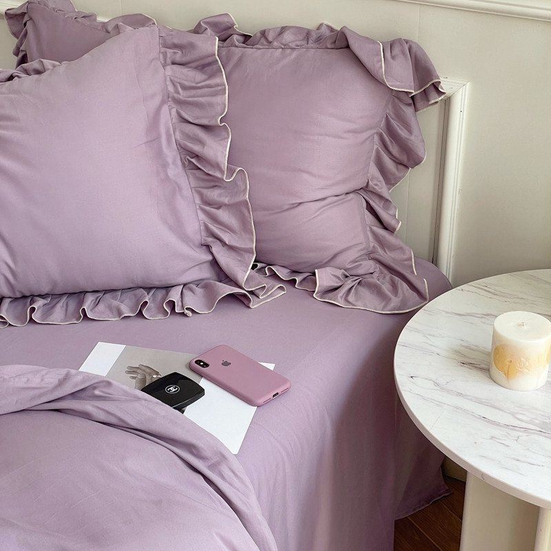 当前位置: 91家纺网 > 商品网购 > 床品套件 > 四件套 > 水洗棉四件套 > 时年 2022新款60长绒棉水洗轻磨毛花边款四件套 风信紫