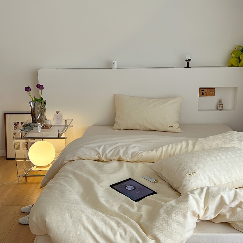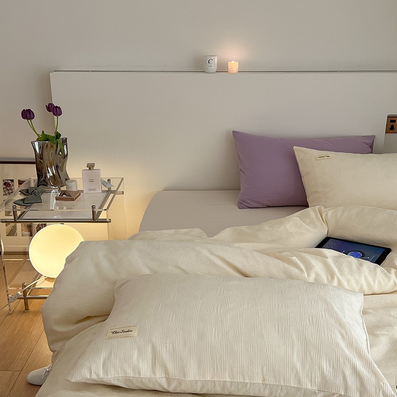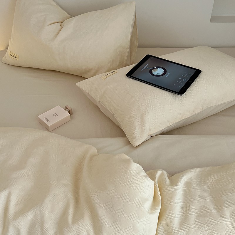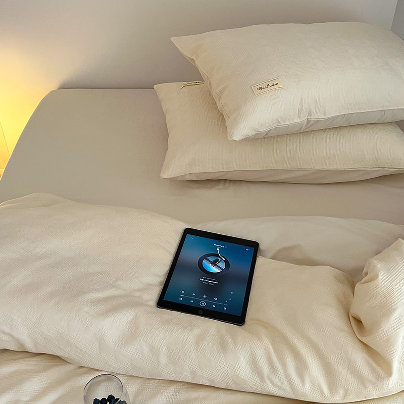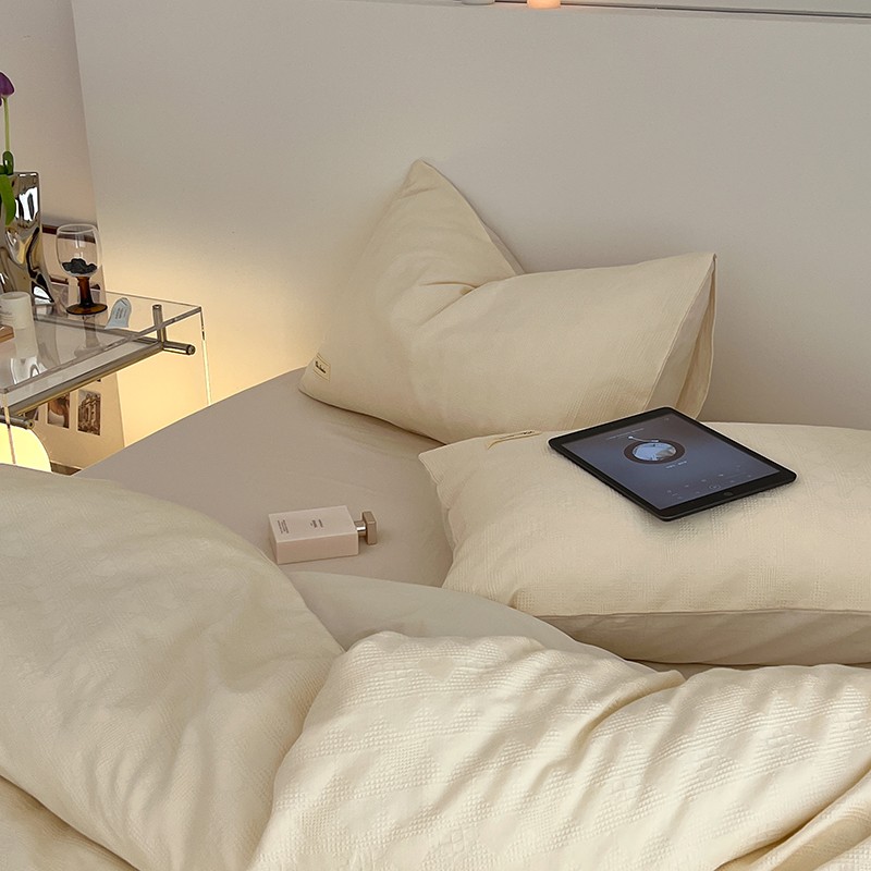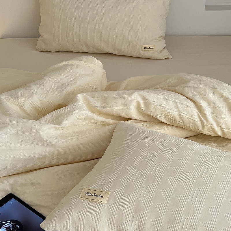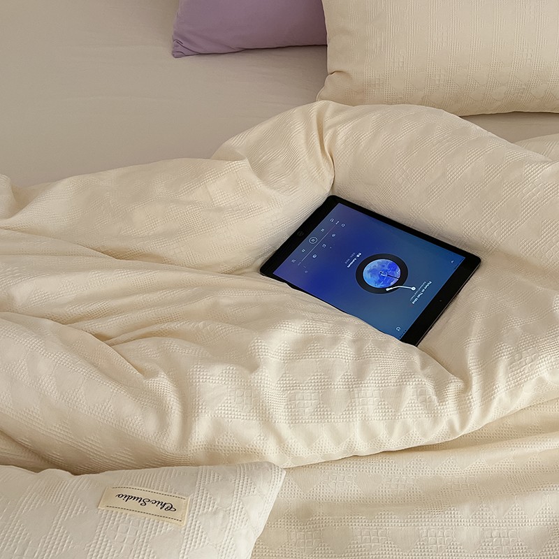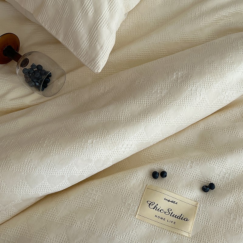 昔可 2022新款60支水洗棉华夫格提花四件套拍法二 爱心米白