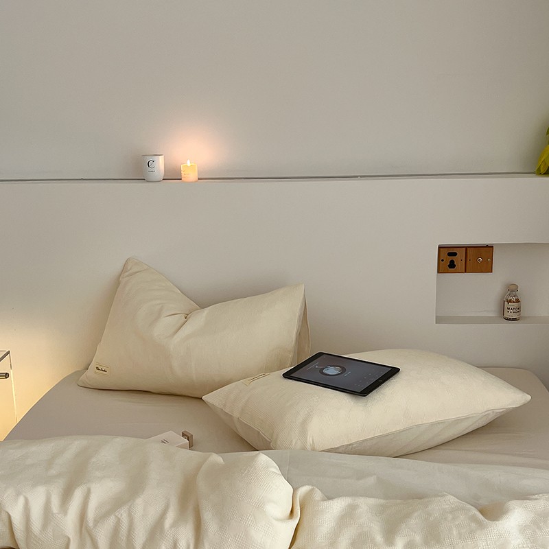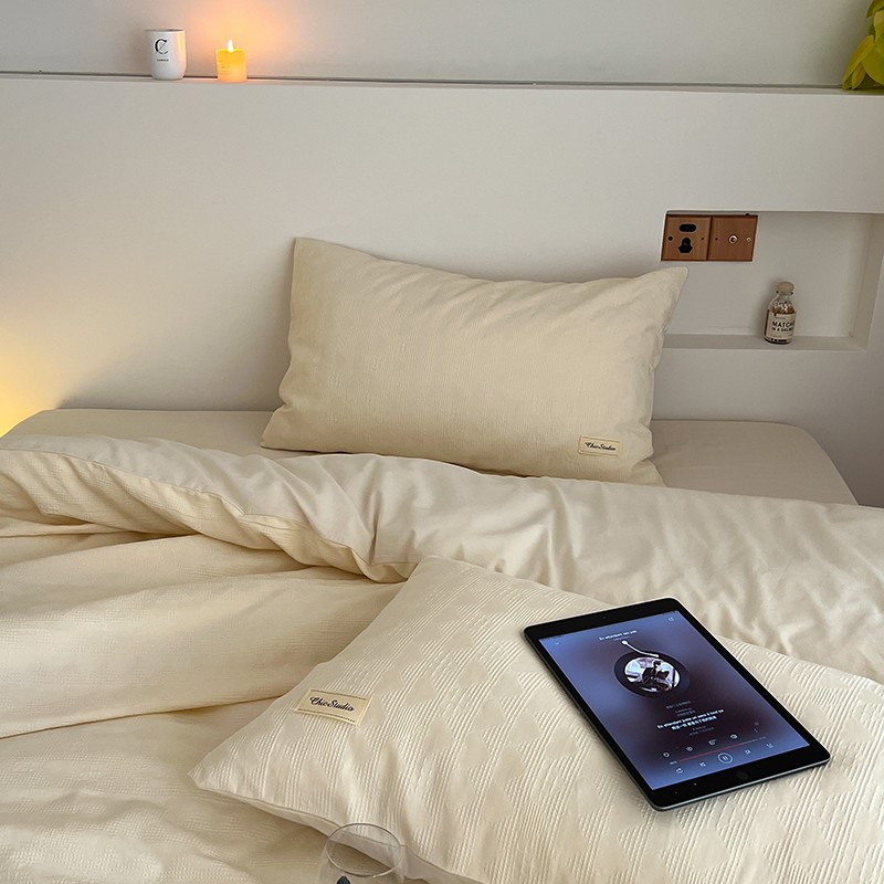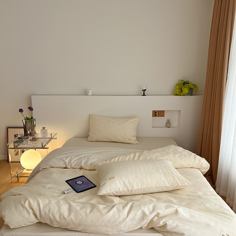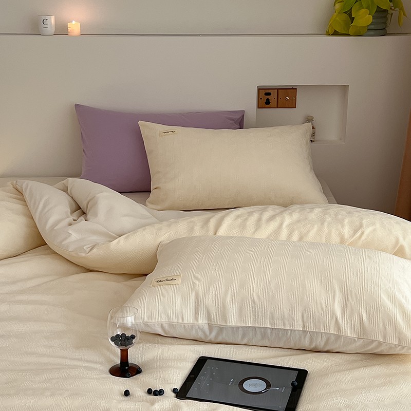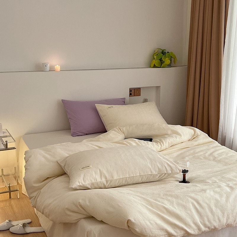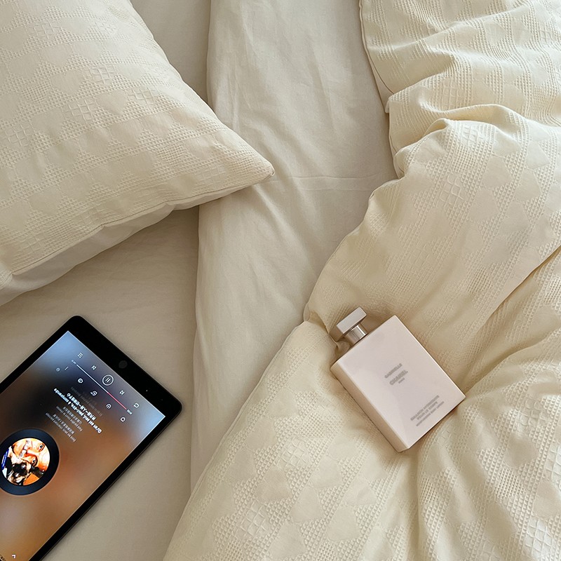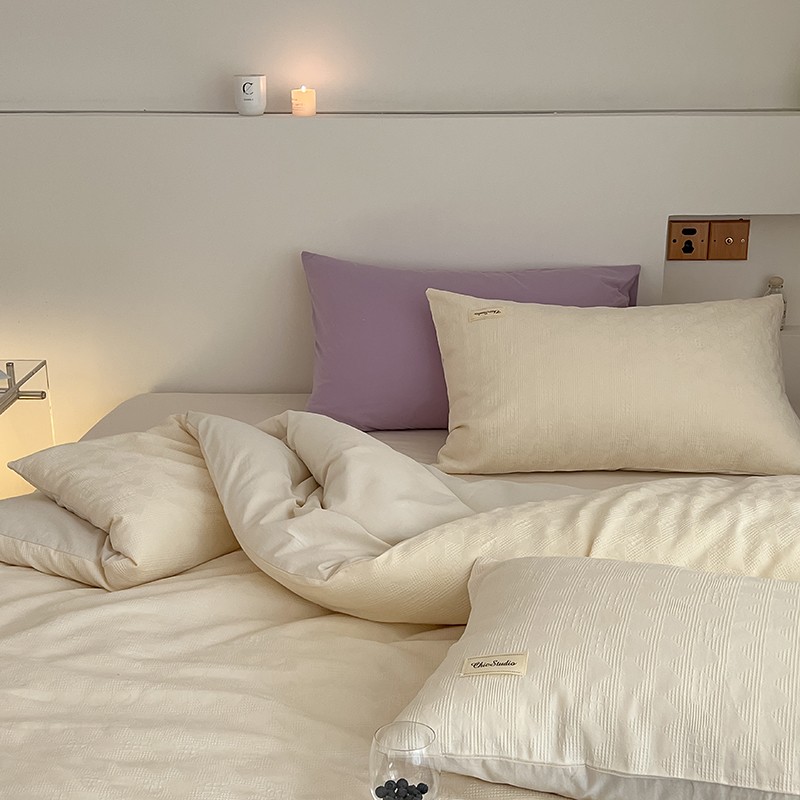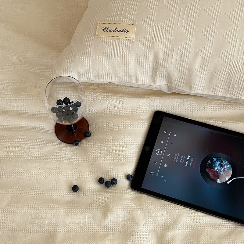 昔可 2022新款60支水洗棉华夫格提花四件套拍法二 爱心米白