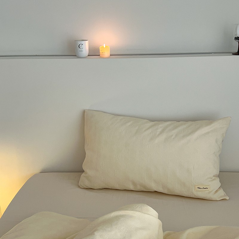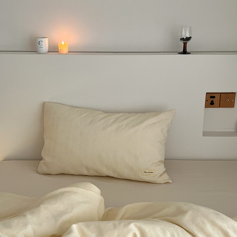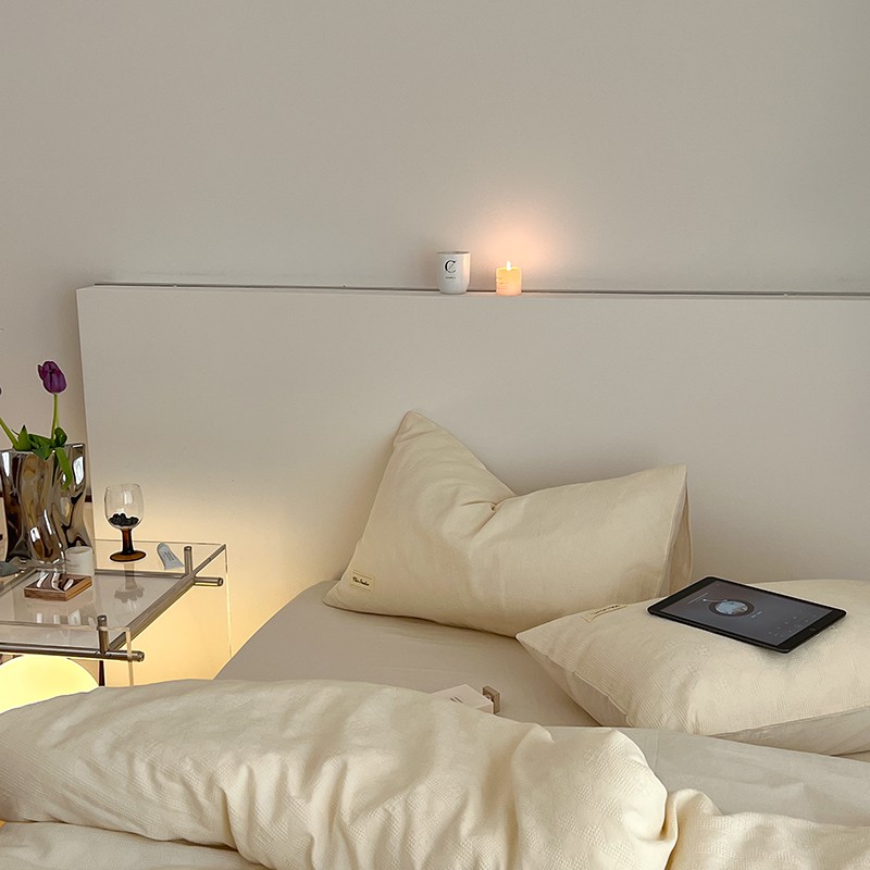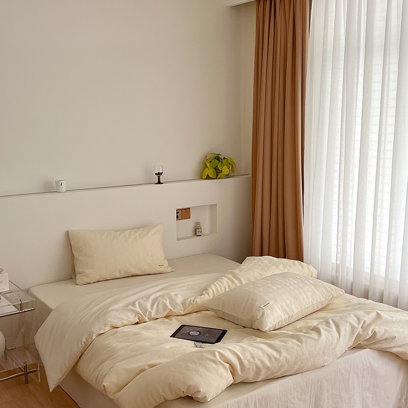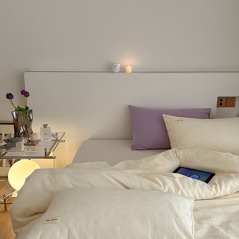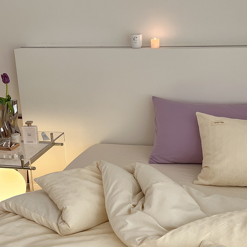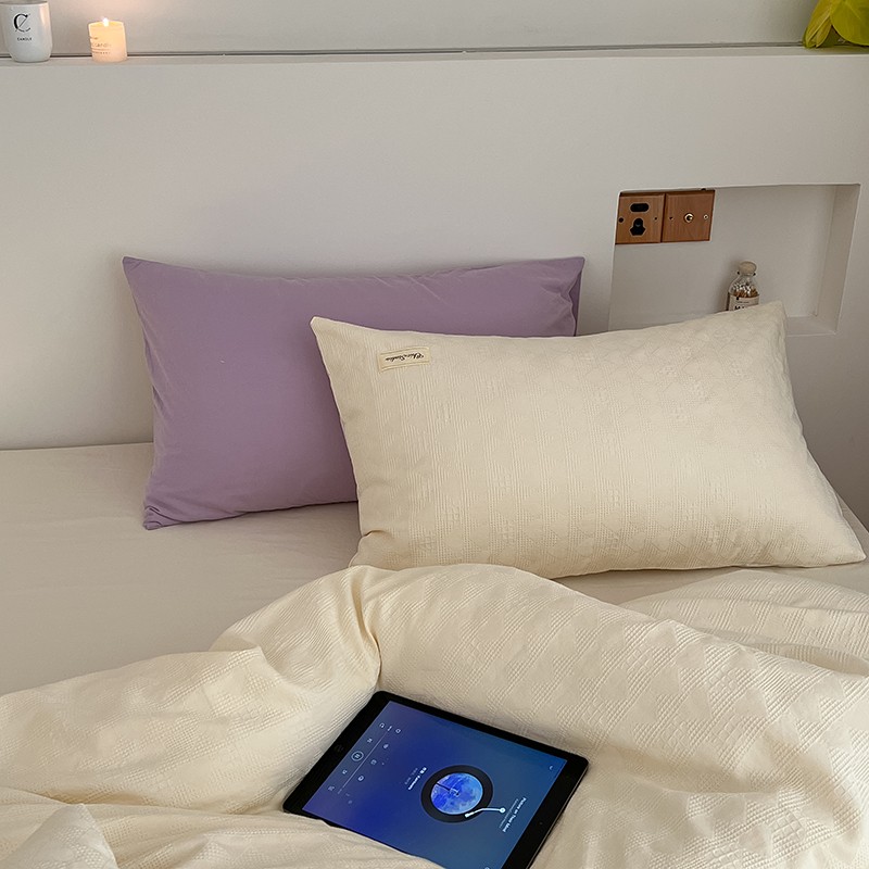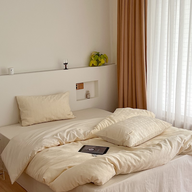 昔可 2022新款60支水洗棉华夫格提花四件套拍法二 爱心米白