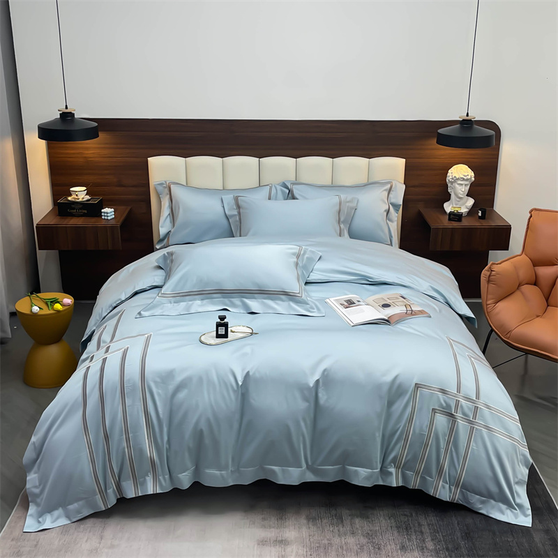 缔缦家纺 2022新款100s澳棉刺绣系列四件套-布朗城堡 布朗城堡-希腊蓝