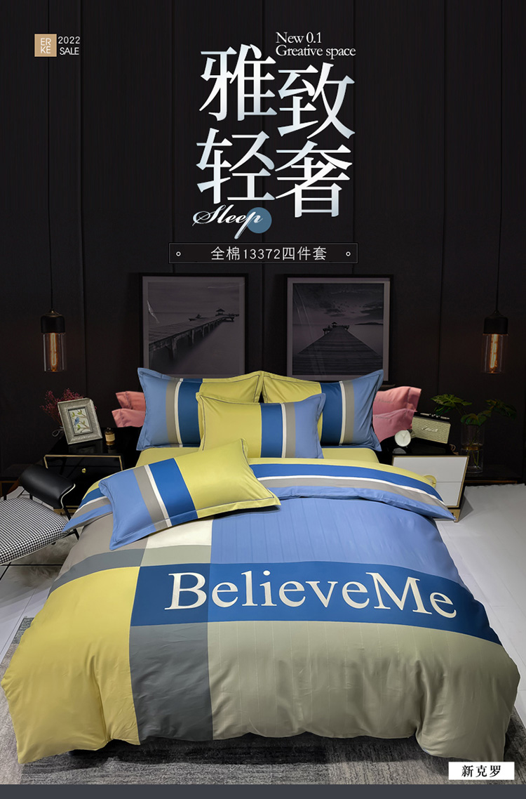 当前位置: 91家纺网 > 商品网购 > 床品套件 > 四件套 > 全棉普通四件套 > 金爱家 2023新款全棉13372简约条格四件套 新克罗