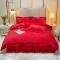 畅销被业 2022网红款水晶绒绗缝床裙绗缝被套款四件套法莱绒 胭脂红