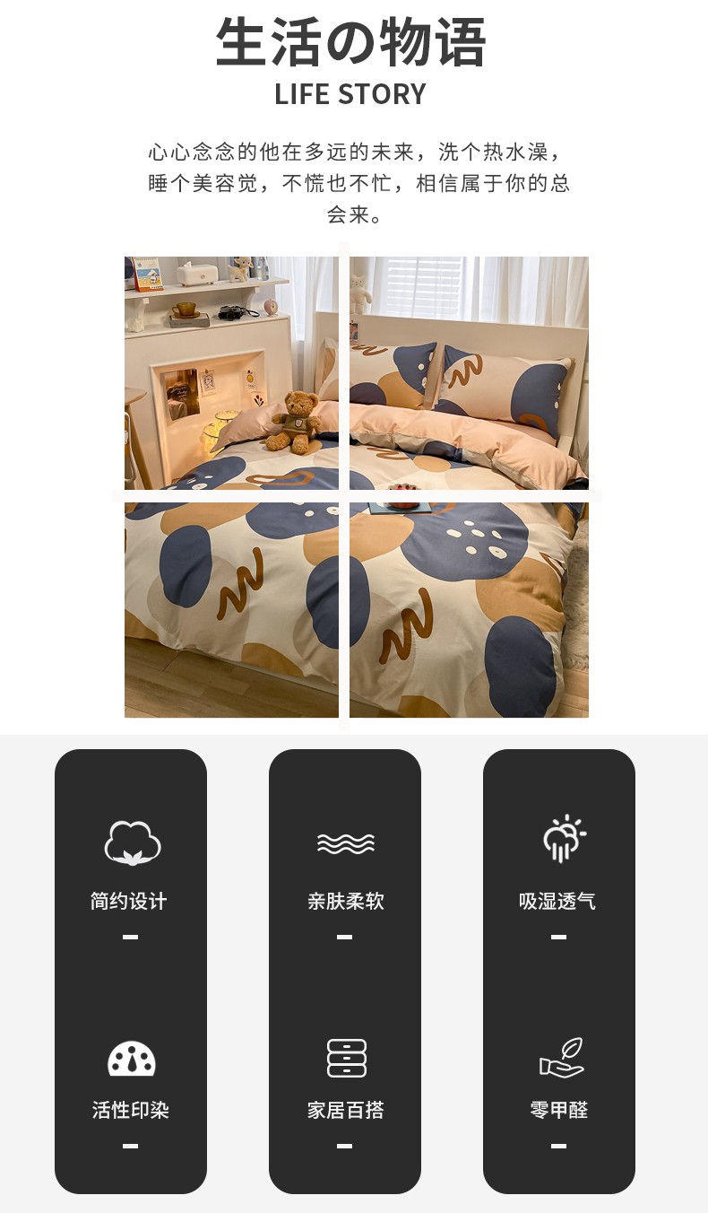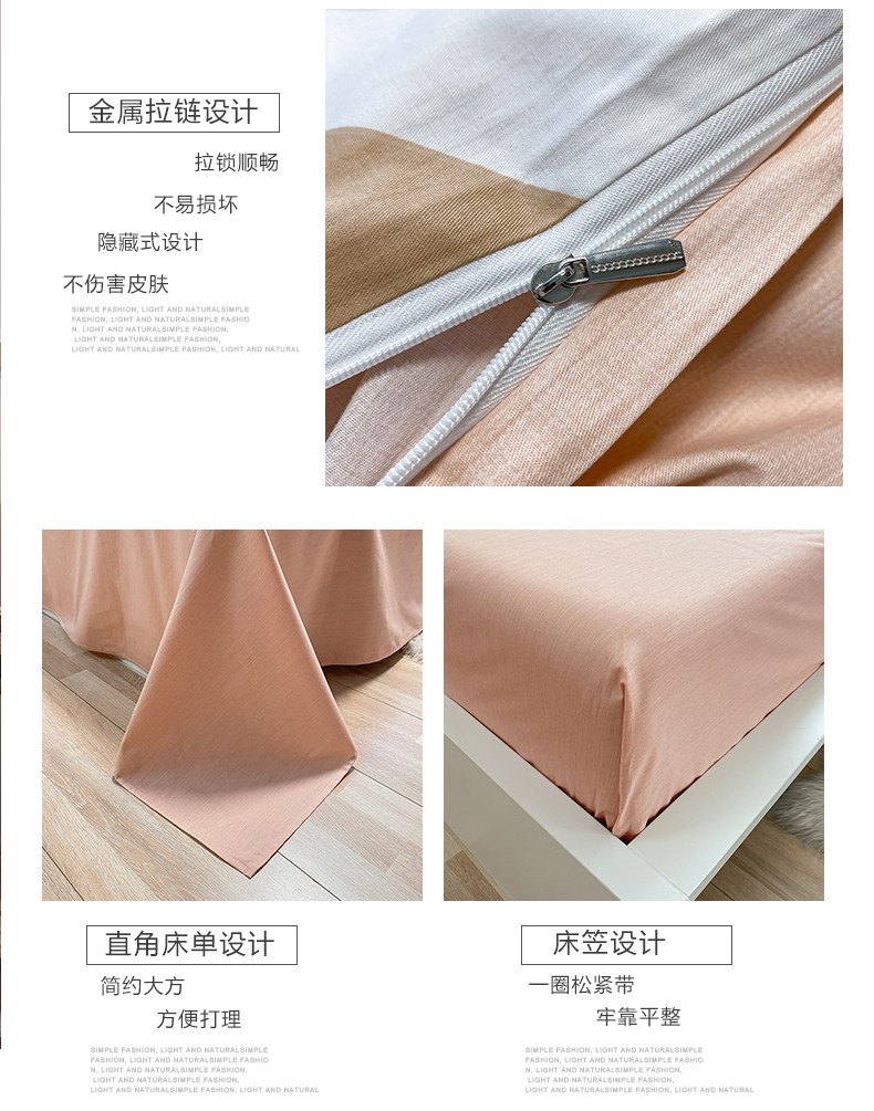 吉象 2022新款全棉活性印花四件套-北欧风系列 悉尼-豆沙