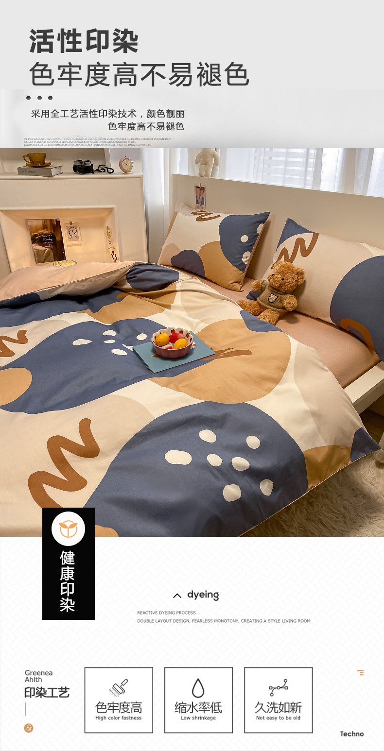 (总)吉象 2022新款全棉活性印花四件套-北欧风系列,马里奥,悉尼-豆沙,悉尼-绿