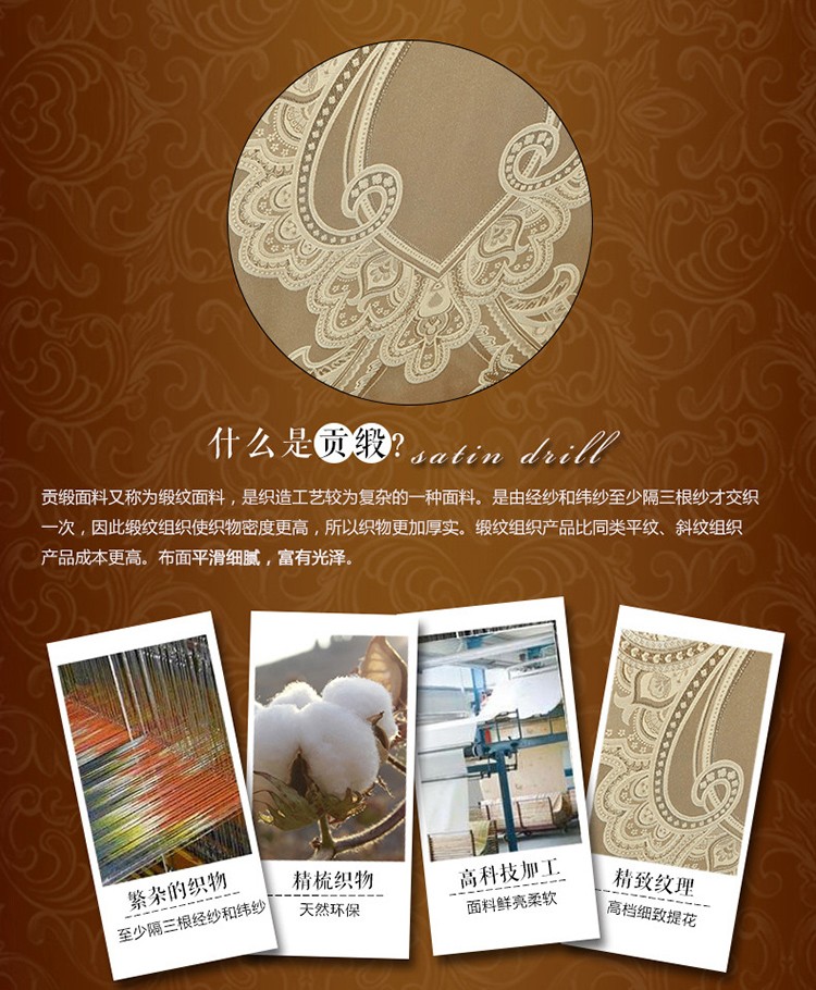商品名称:卡迪亚 2022新款全棉13372贡缎提花四件套豪华经典浅咖