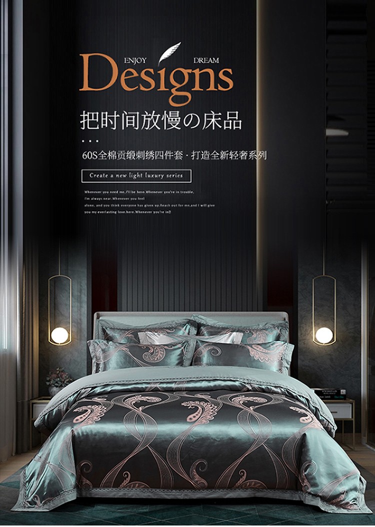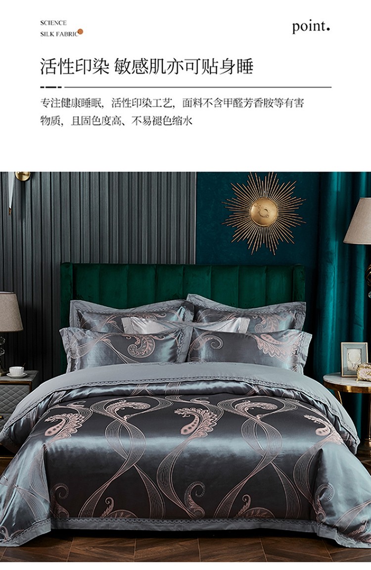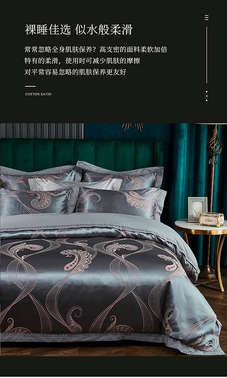 商品名称:卡迪亚 2022新款全棉13372贡缎提花四件套 星空灰