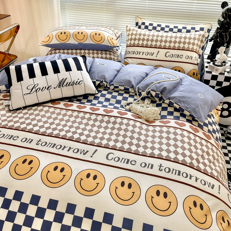 当前位置: 91家纺网 > 商品网购 > 床品套件 > 四件套 > 全棉普通四件套 > HL原创 2022新款13070全棉40支北欧风四件套 笑脸