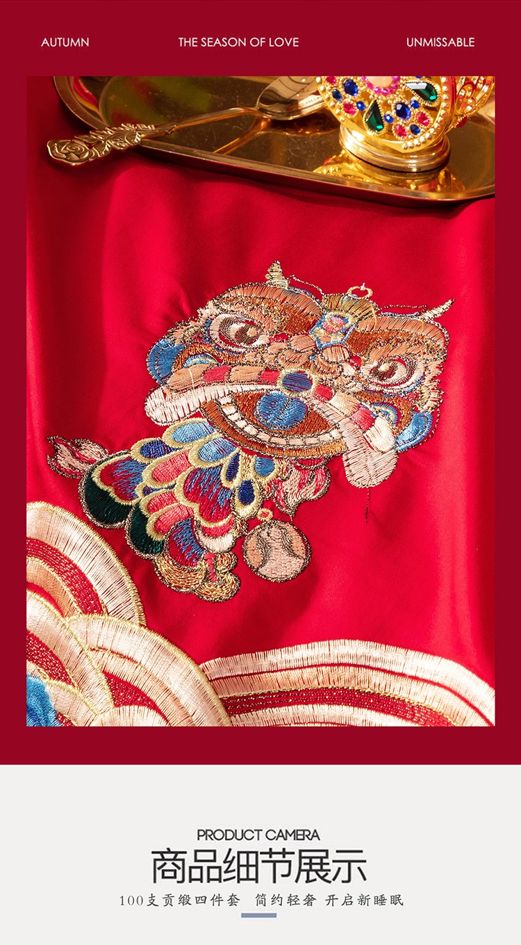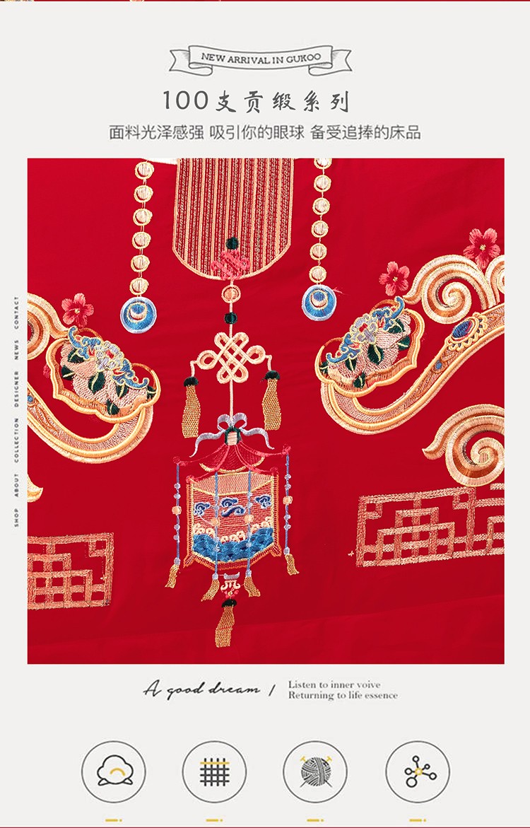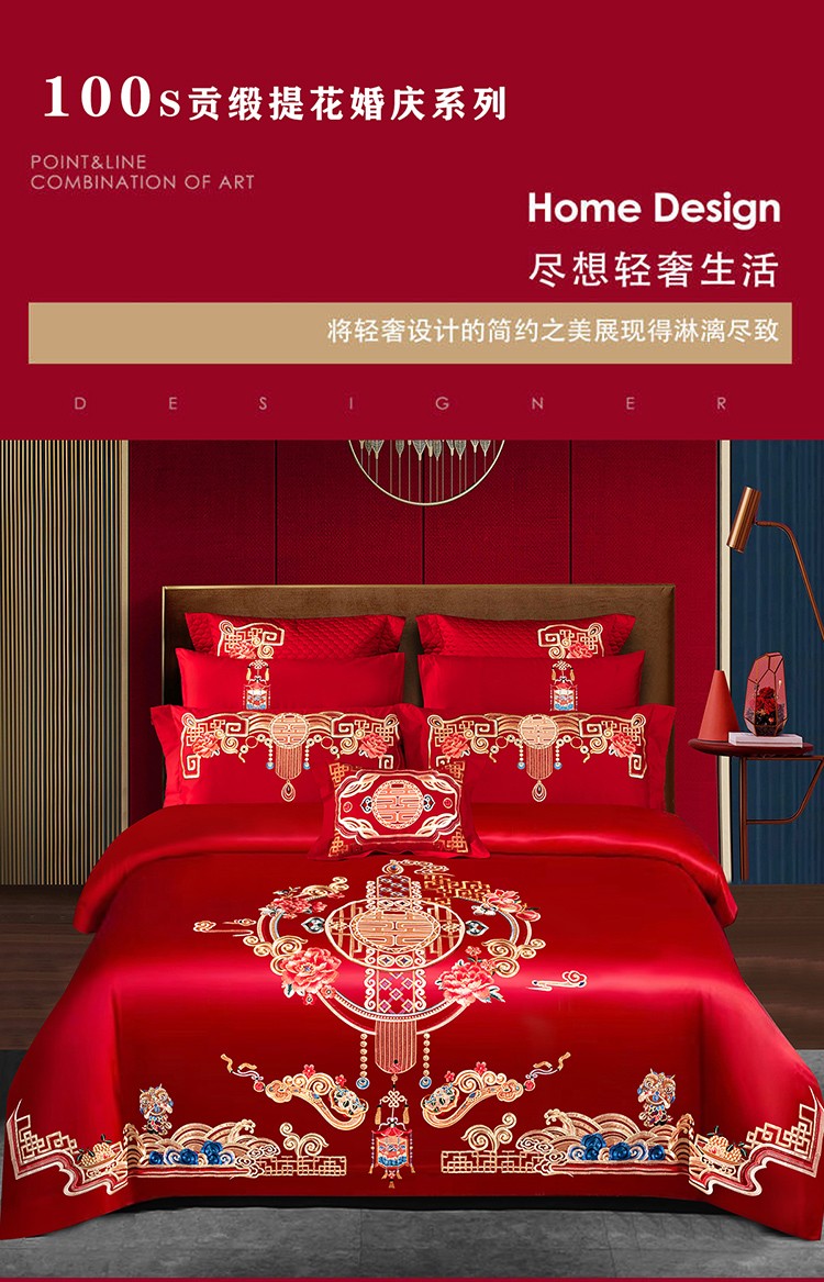 商品名称:柏拉图 2022新款100支贡缎长绒棉婚庆四件套 家有囍事