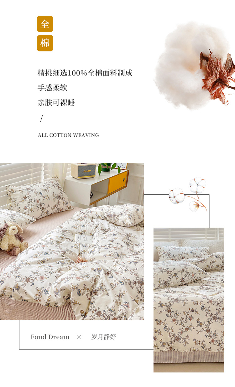 捌月 2023新款13372喷气全棉四件套繁花系列 茵曼