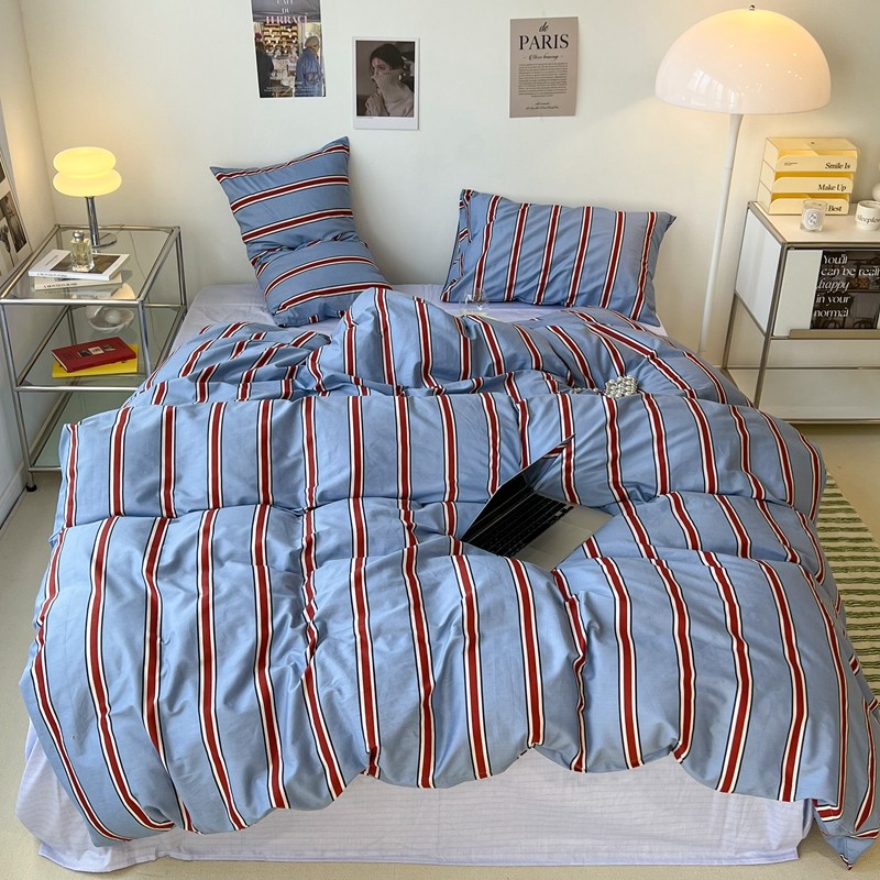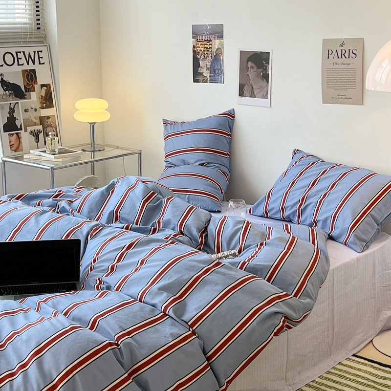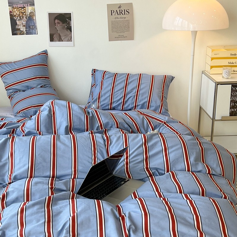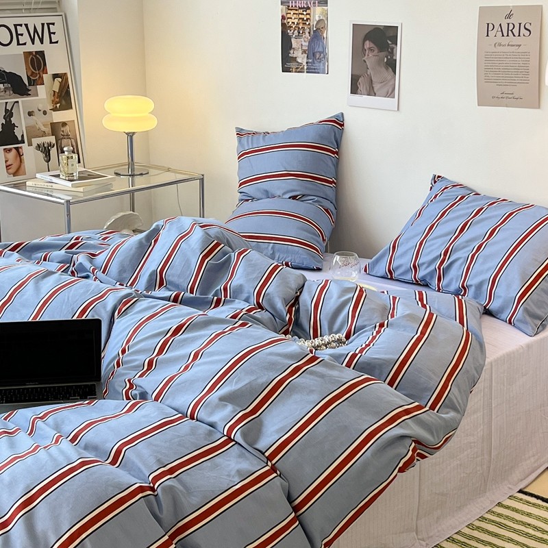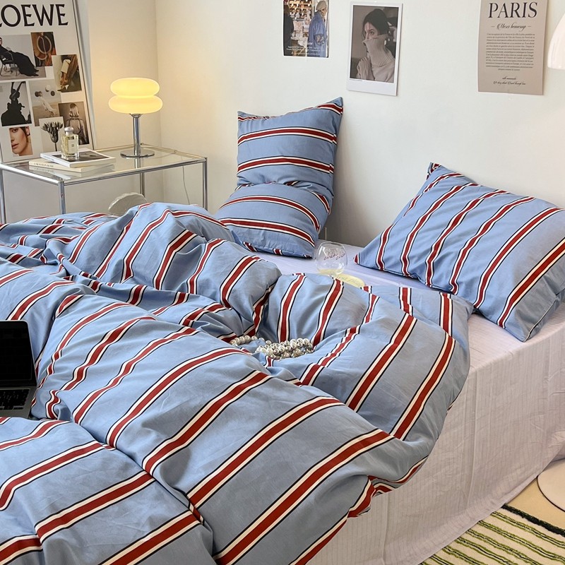昔可家纺2022新款韩风简约条纹全棉套件正常款 红蓝条