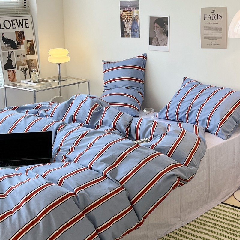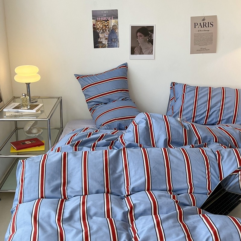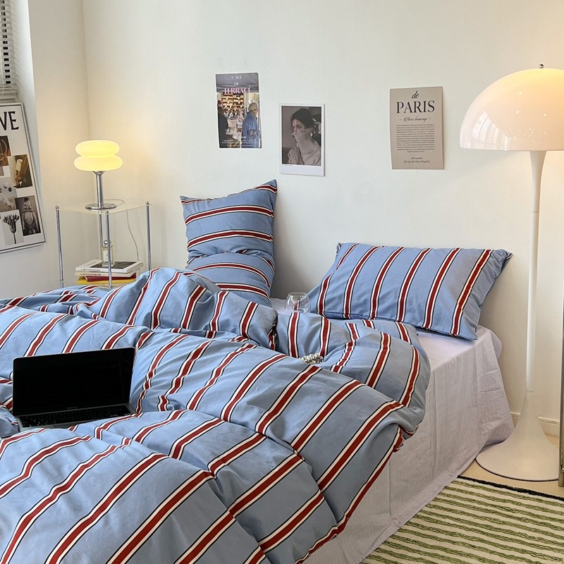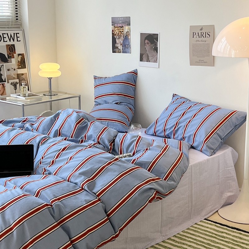 商品名称:昔可家纺2022新款韩风简约条纹全棉套件正常款 红蓝条
