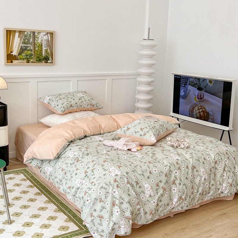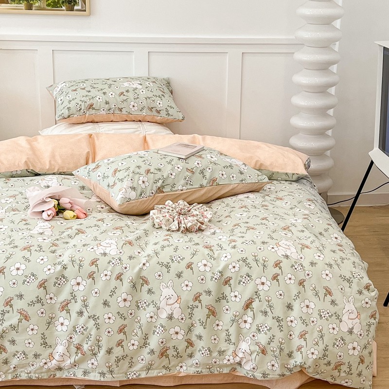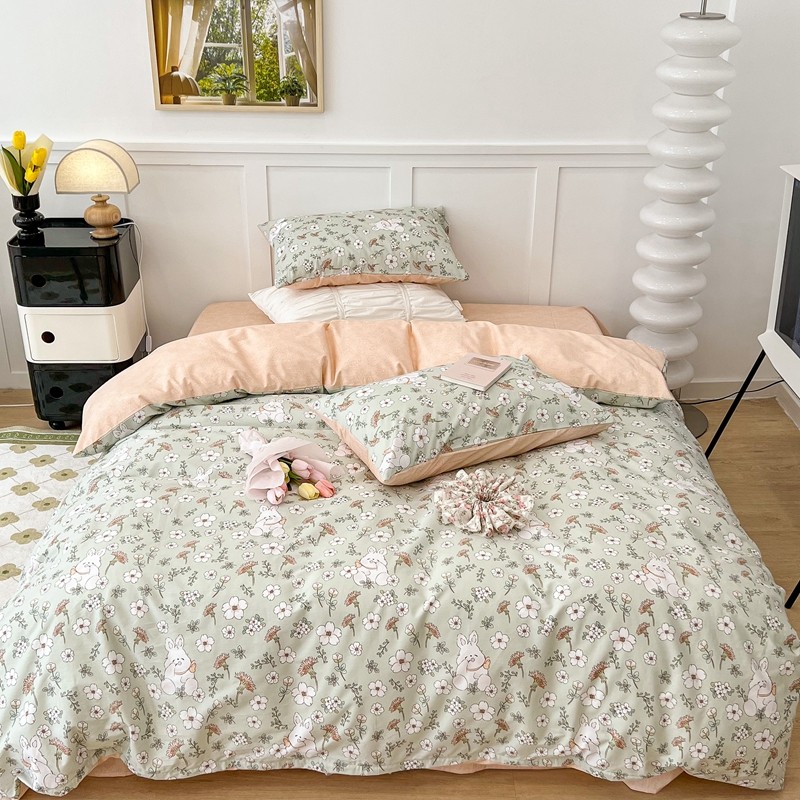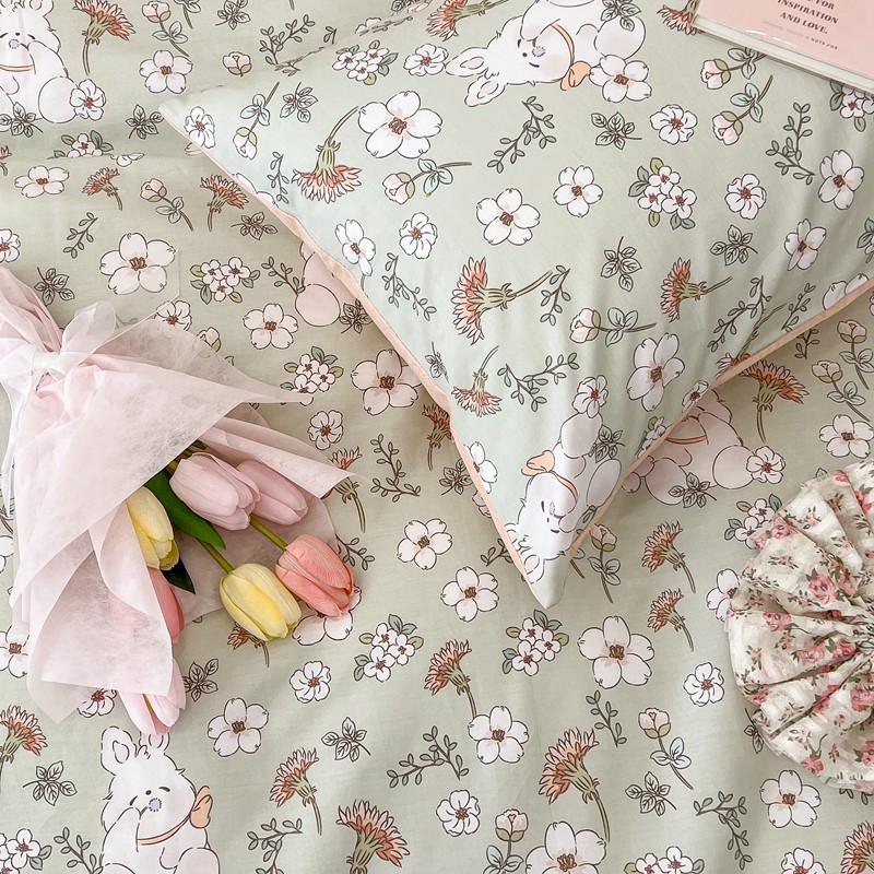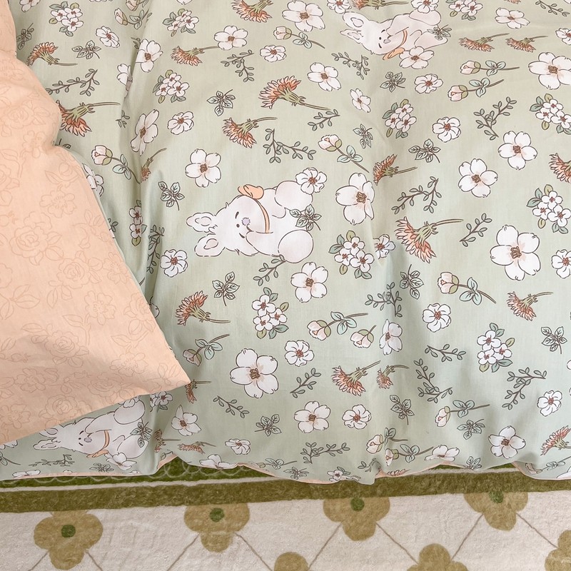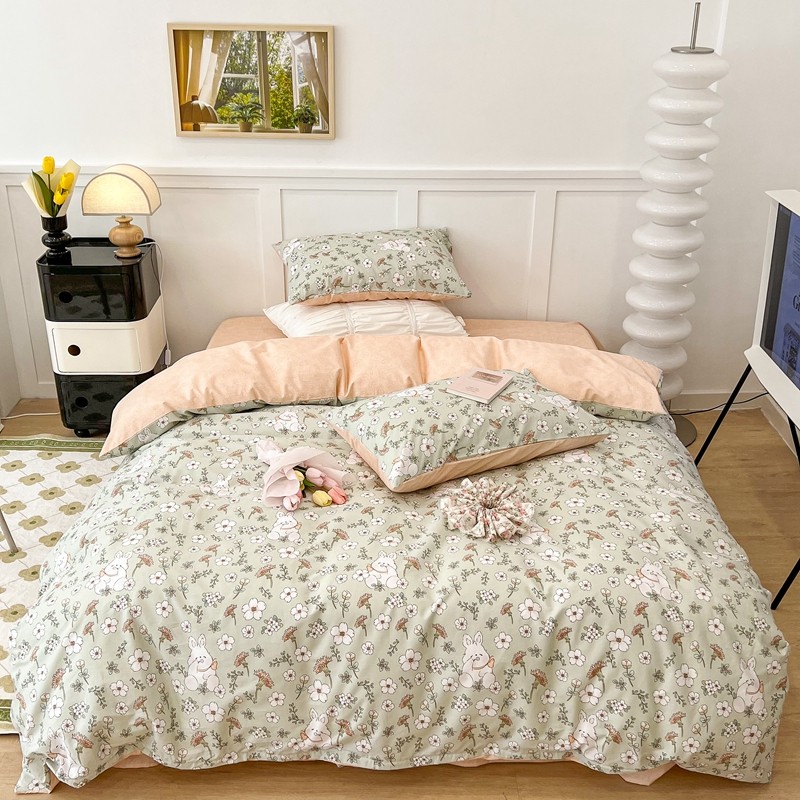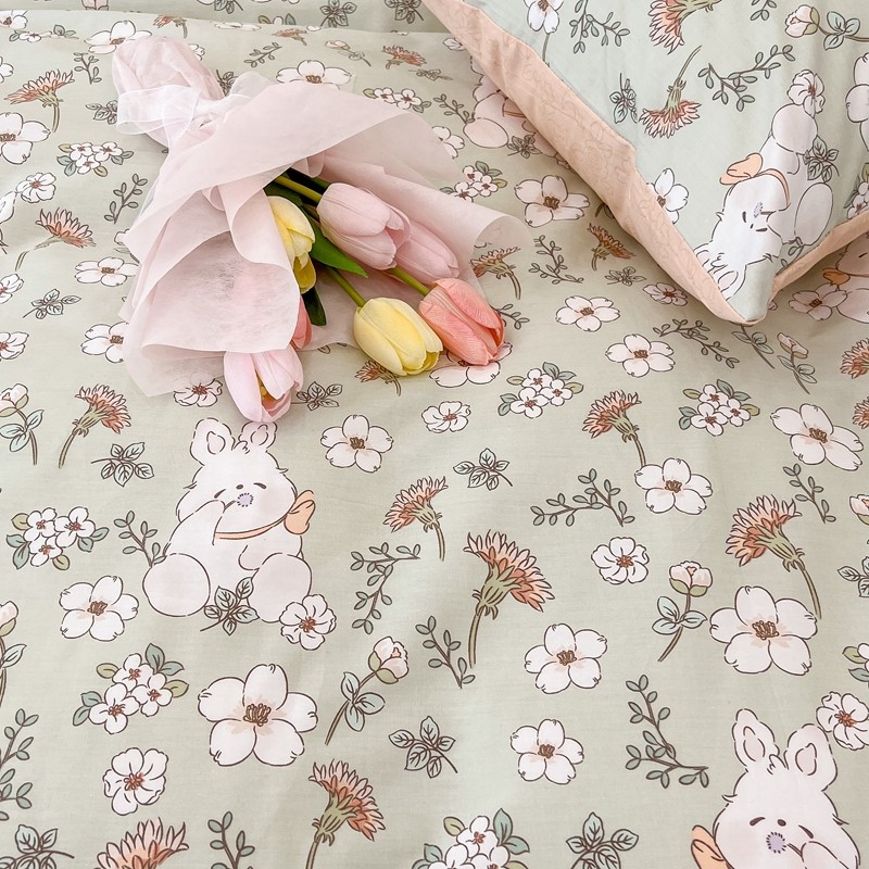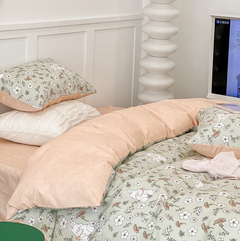 昔可家纺2022新款奶呼呼卧室四件套 绿茵兔