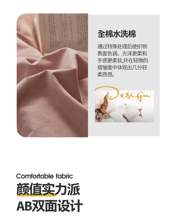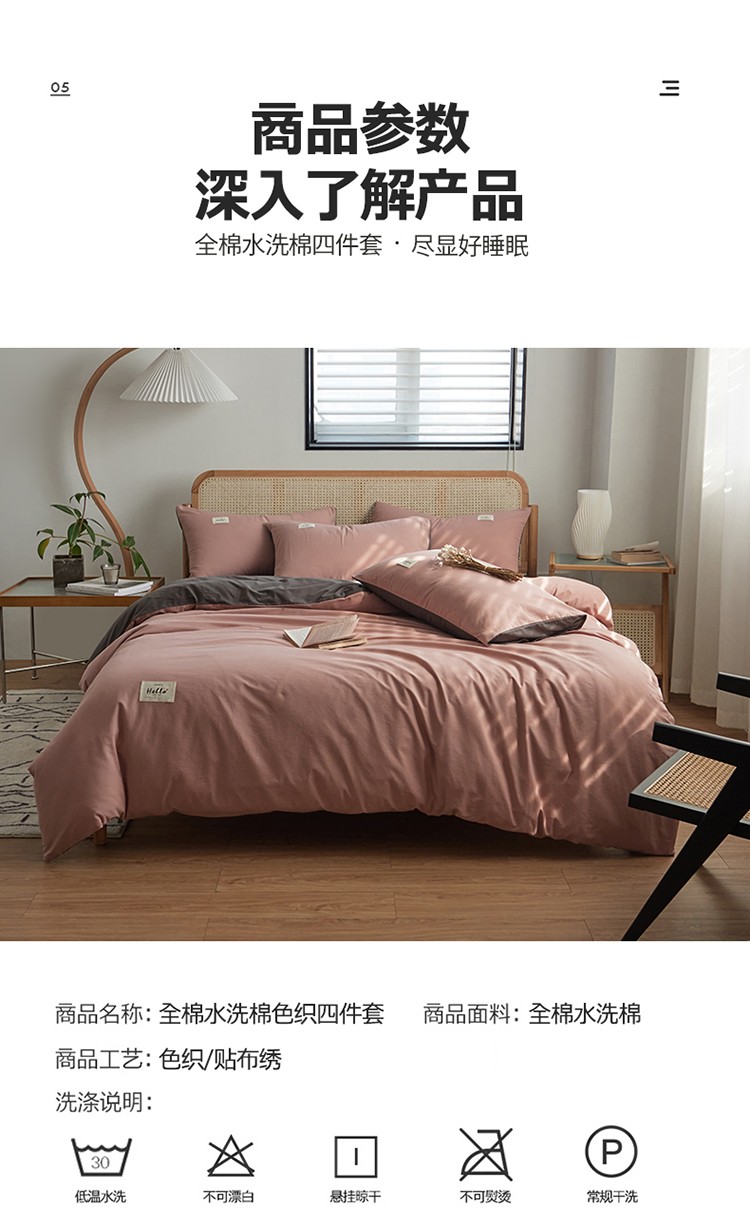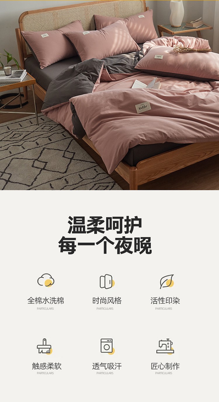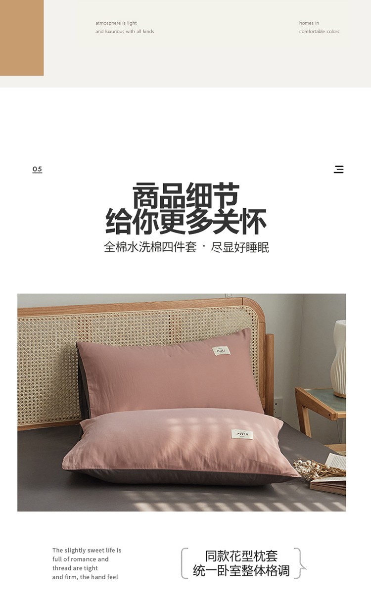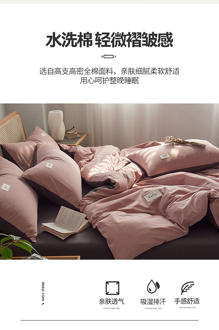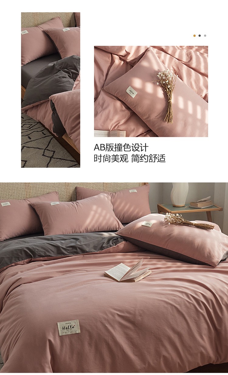 当前位置: 91家纺网 > 商品网购 > 床品套件 > 四件套 > 水洗棉四件套 > ab家纺 2022新款全棉水洗棉四件套(格子+素色) 豆沙深灰