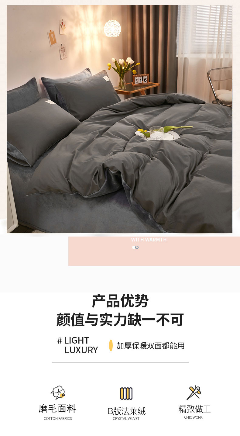 商品名称:啊雅家居 2025新款水洗棉加绒单面绒被套 深灰加牛奶绒