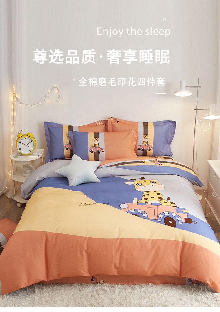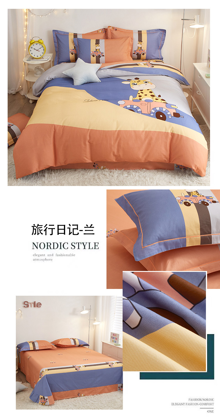 商品名称:金纱玉纺2022新款全棉生态大版磨毛四件套旅行日记-兰