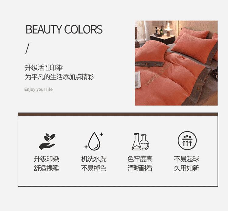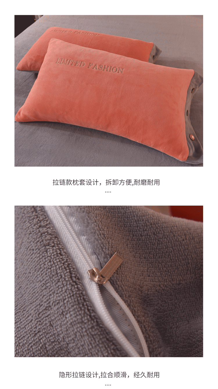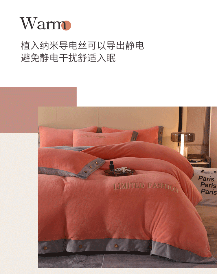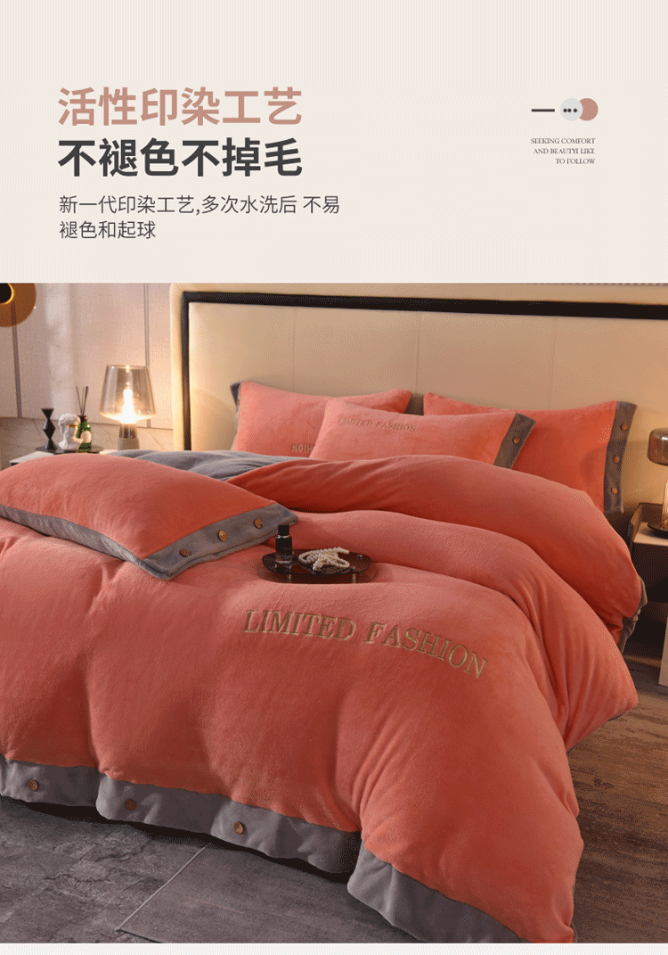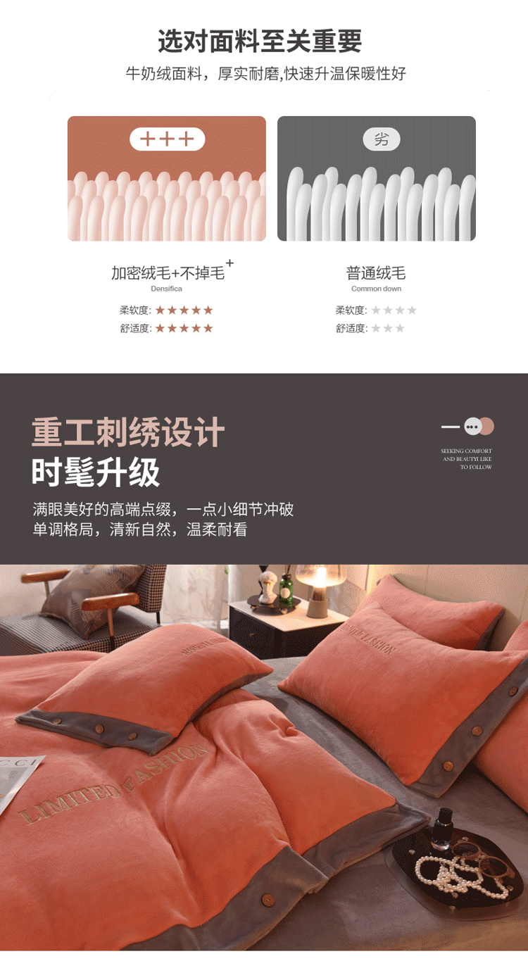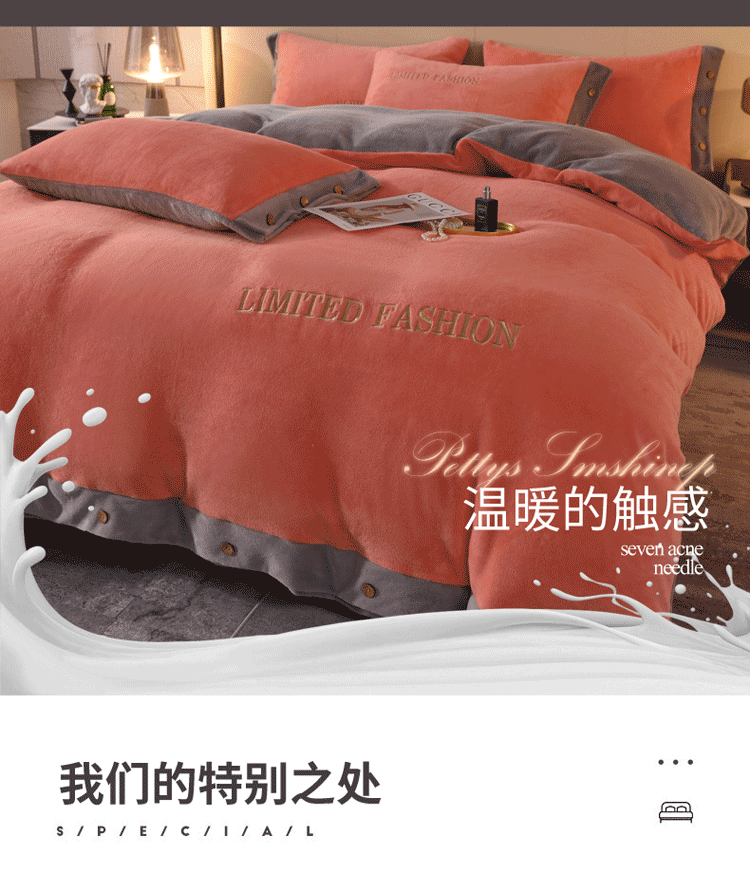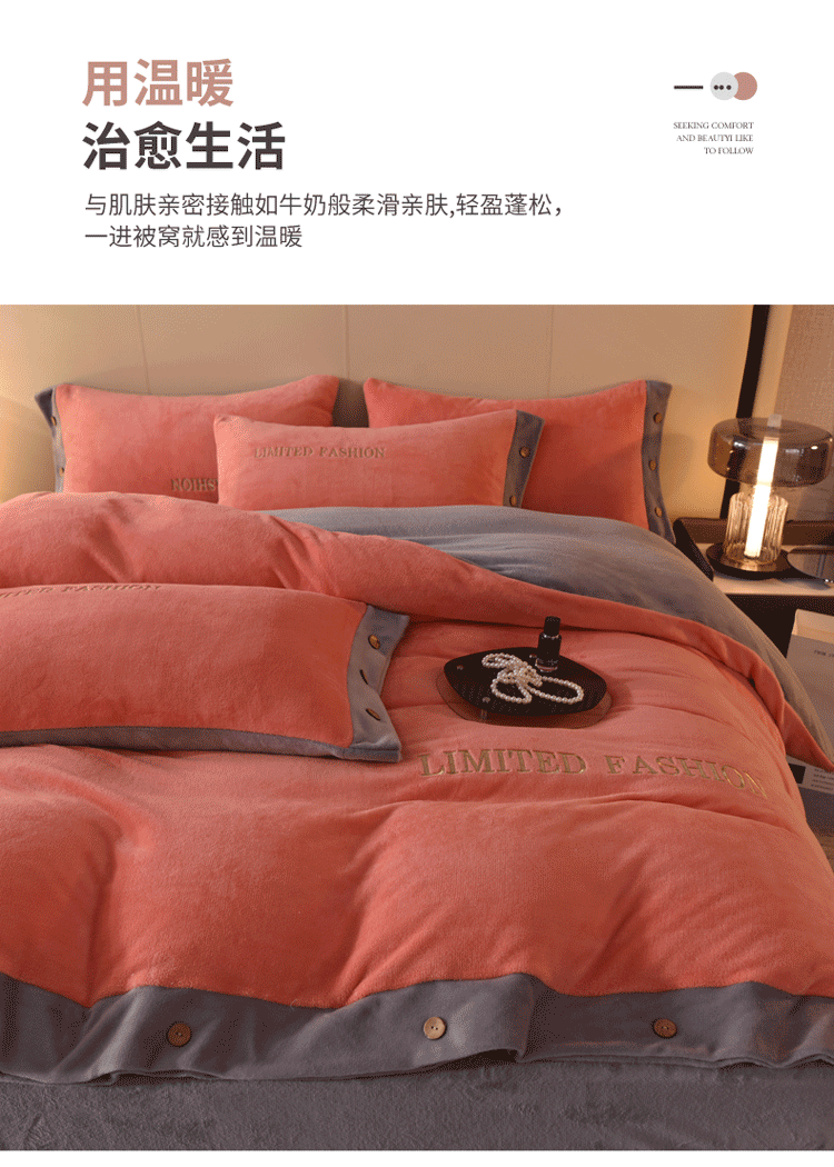 商品名称:欧冠 2022秋冬新款高端刺绣牛奶绒四件套 橙-灰