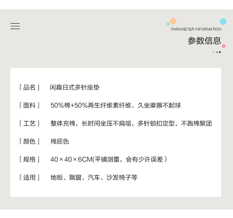 当前位置: 91家纺网 > 商品网购 > 居家日用 > 靠垫/抱枕 > 美茉家居 2022新款闲趣日式多针坐垫 圆形