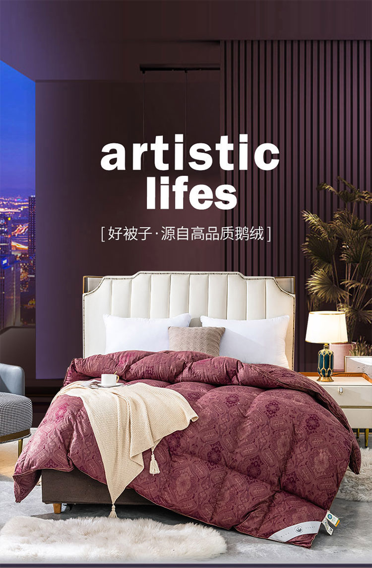 总绒研羽绒 2025魅力人生真丝大提花鹅绒被羽绒被冬被被子,灰色,藕粉,香槟色