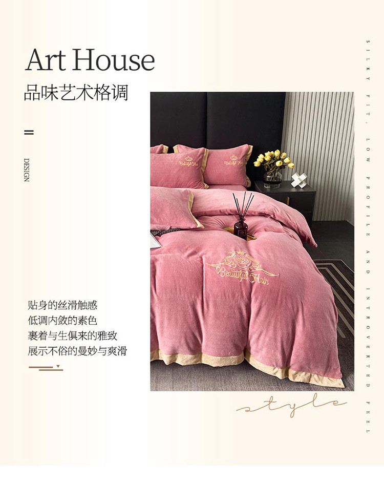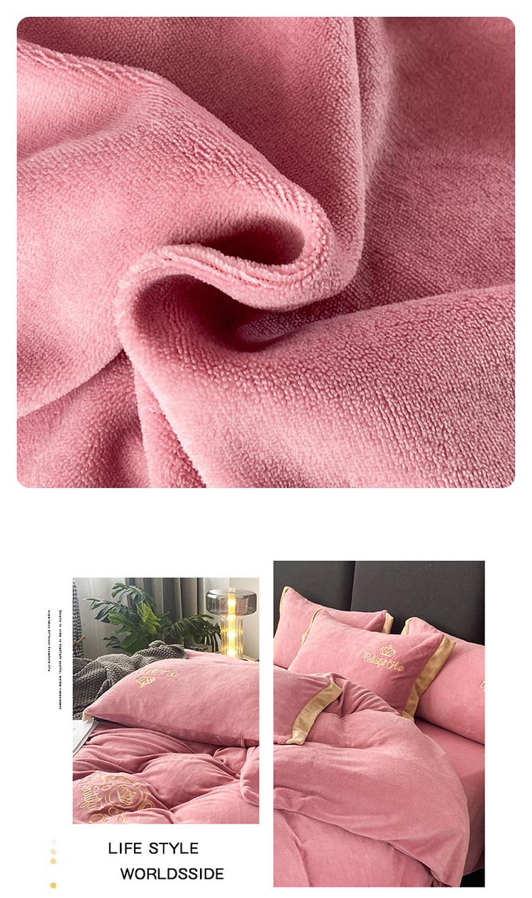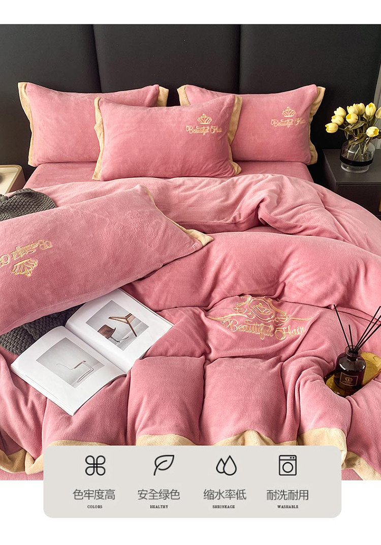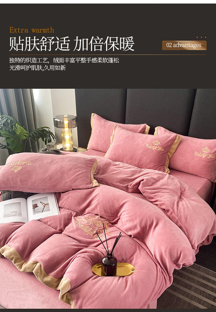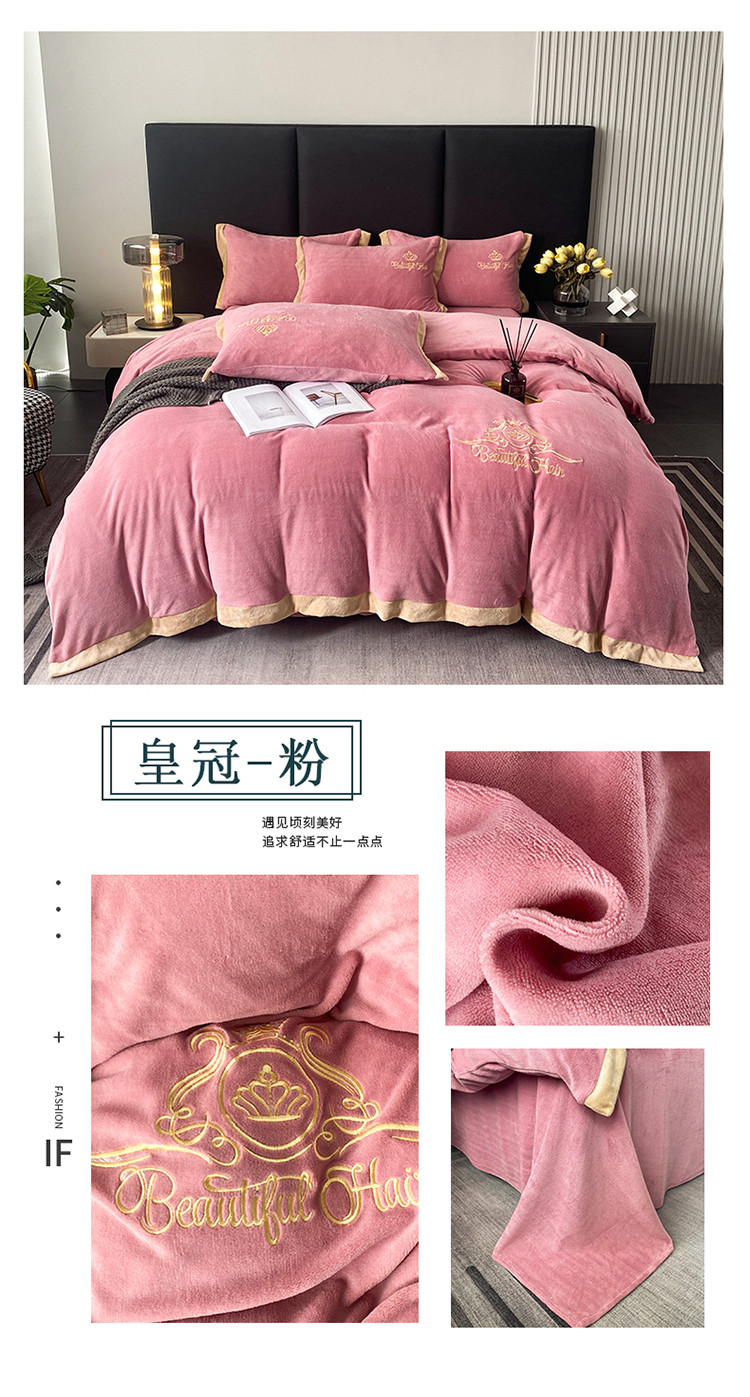 铠畅 2022年新款冬季爆款牛奶绒绒四件套 皇冠-粉