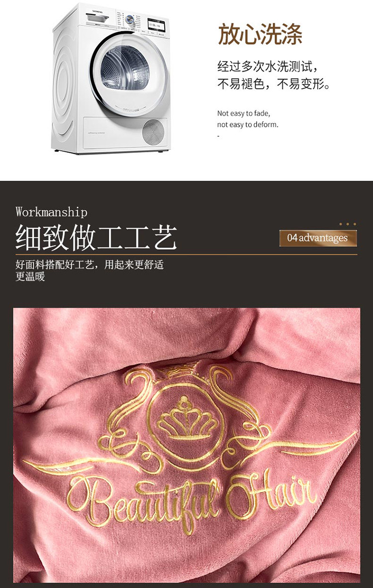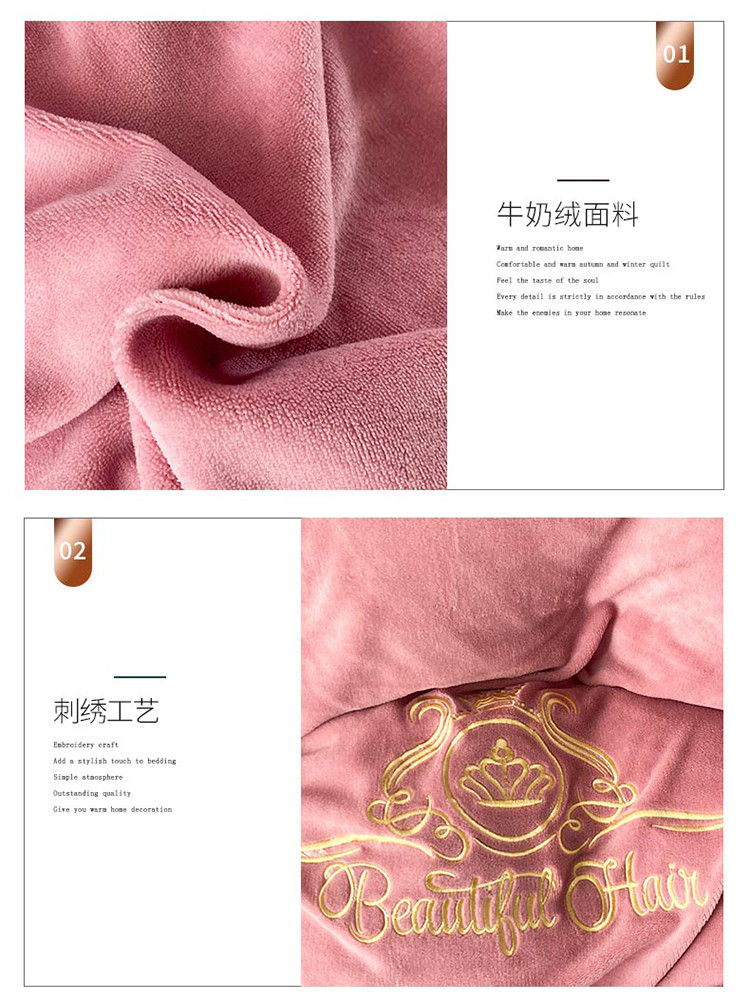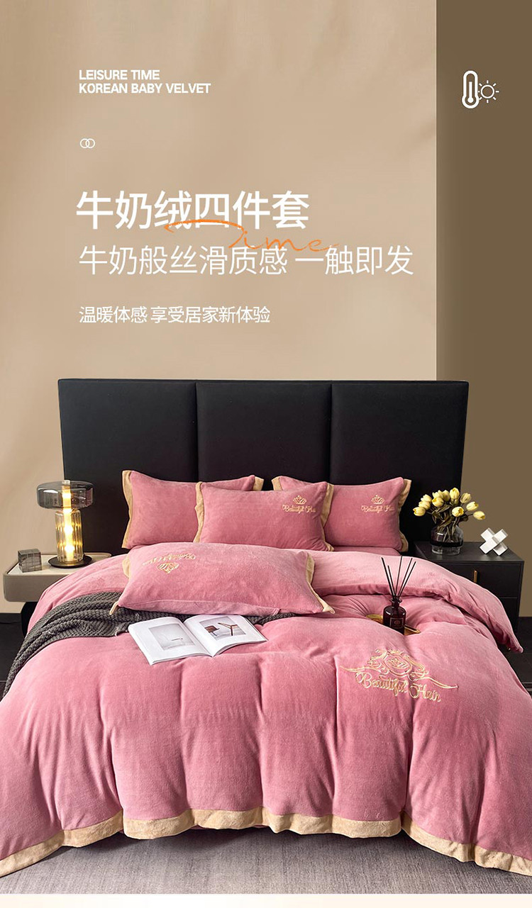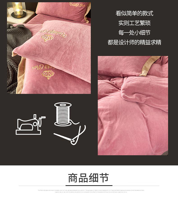 商品名称:铠畅 2022年新款冬季爆款牛奶绒绒四件套 皇冠-粉