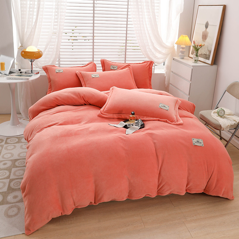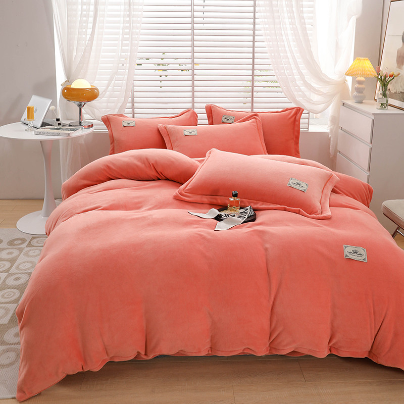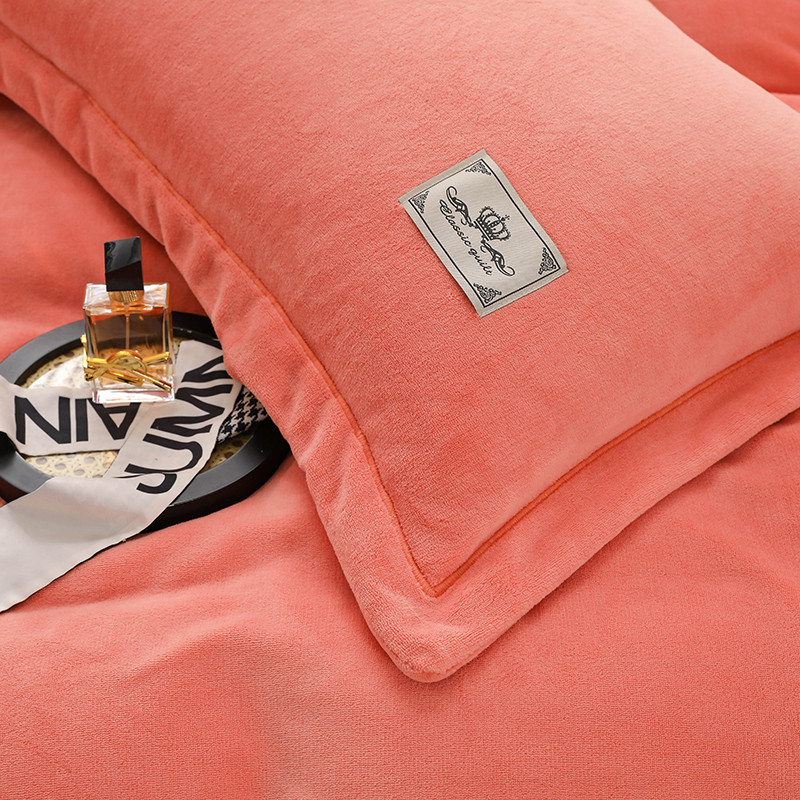 优姿2022新款9斤重牛奶棉床裙款四件套 香妃桔