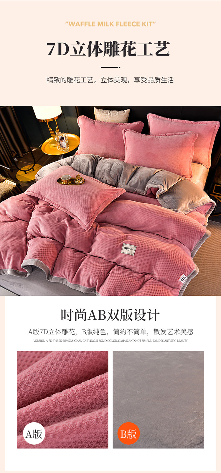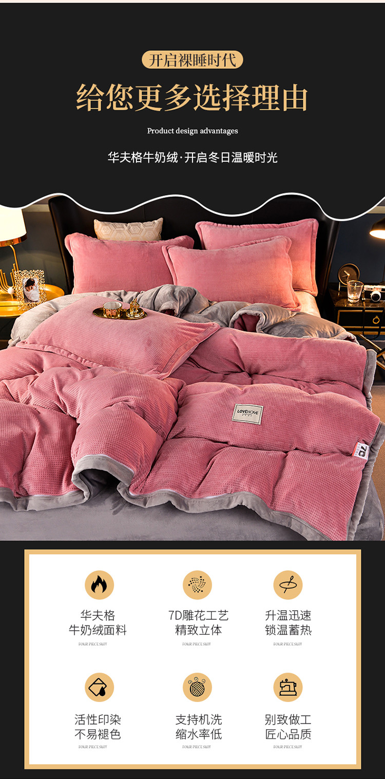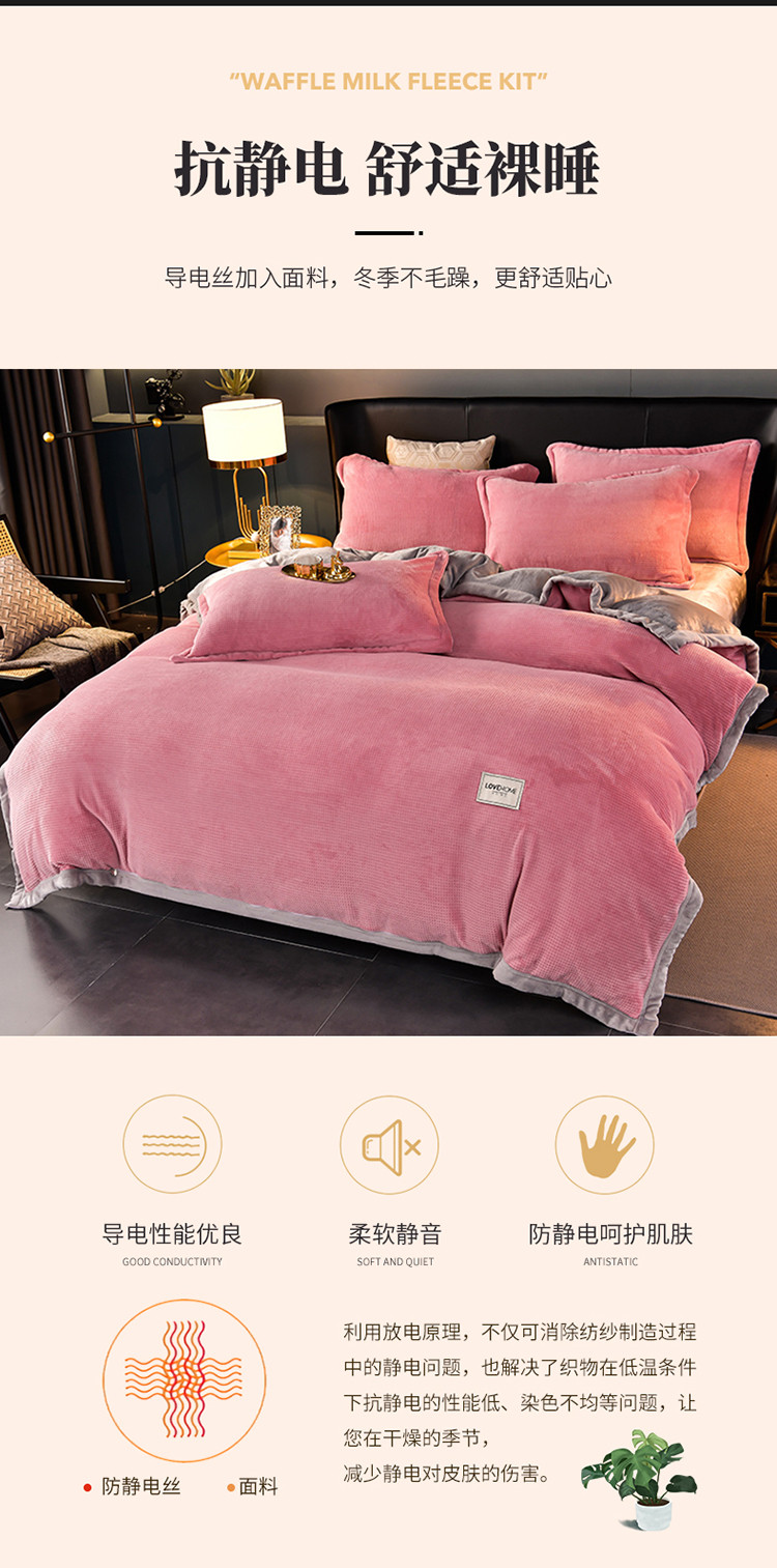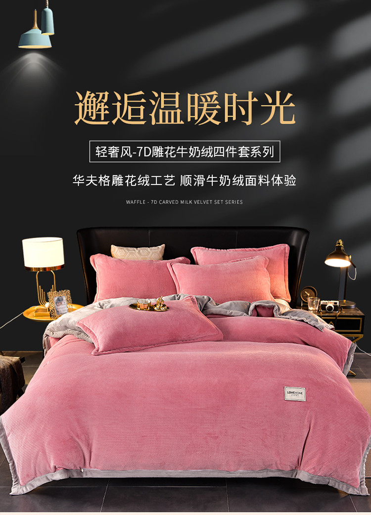 当前位置: 91家纺网 > 商品网购 > 床品套件 > 四件套 > 牛奶绒四件套 > 小牛席业 2022新款雕花牛奶绒四件套 华夫格牛奶绒(粉色)