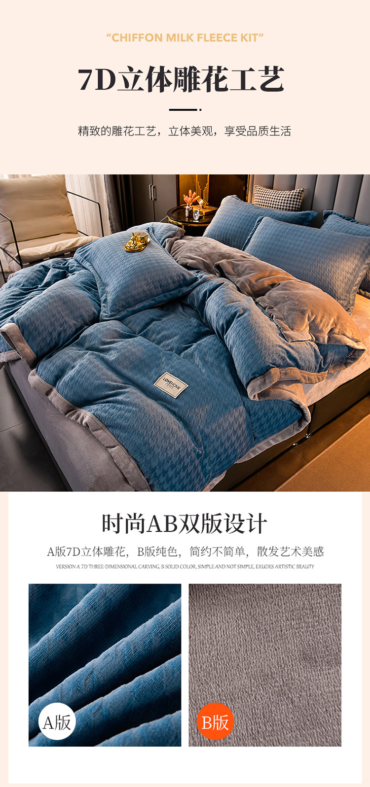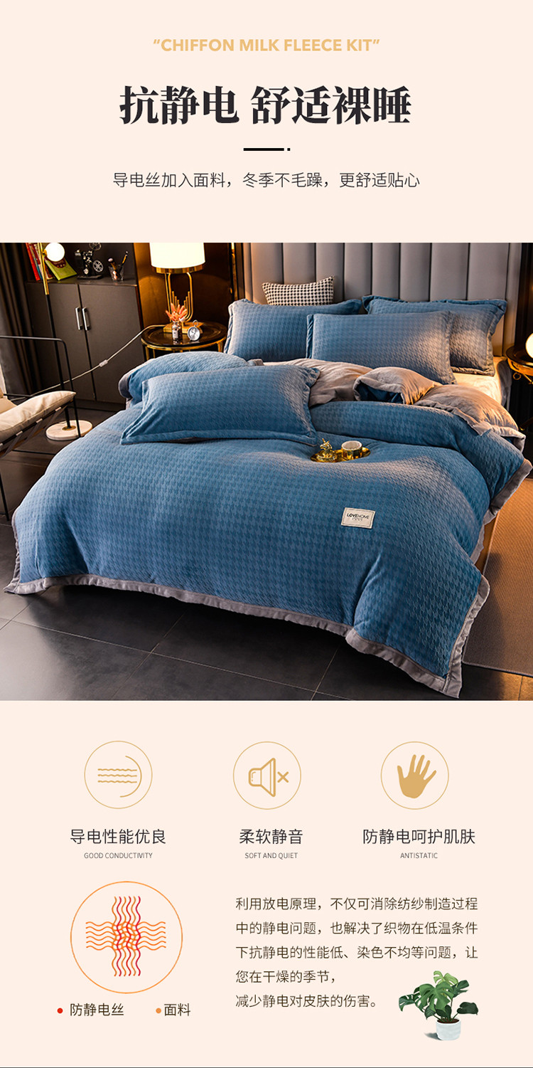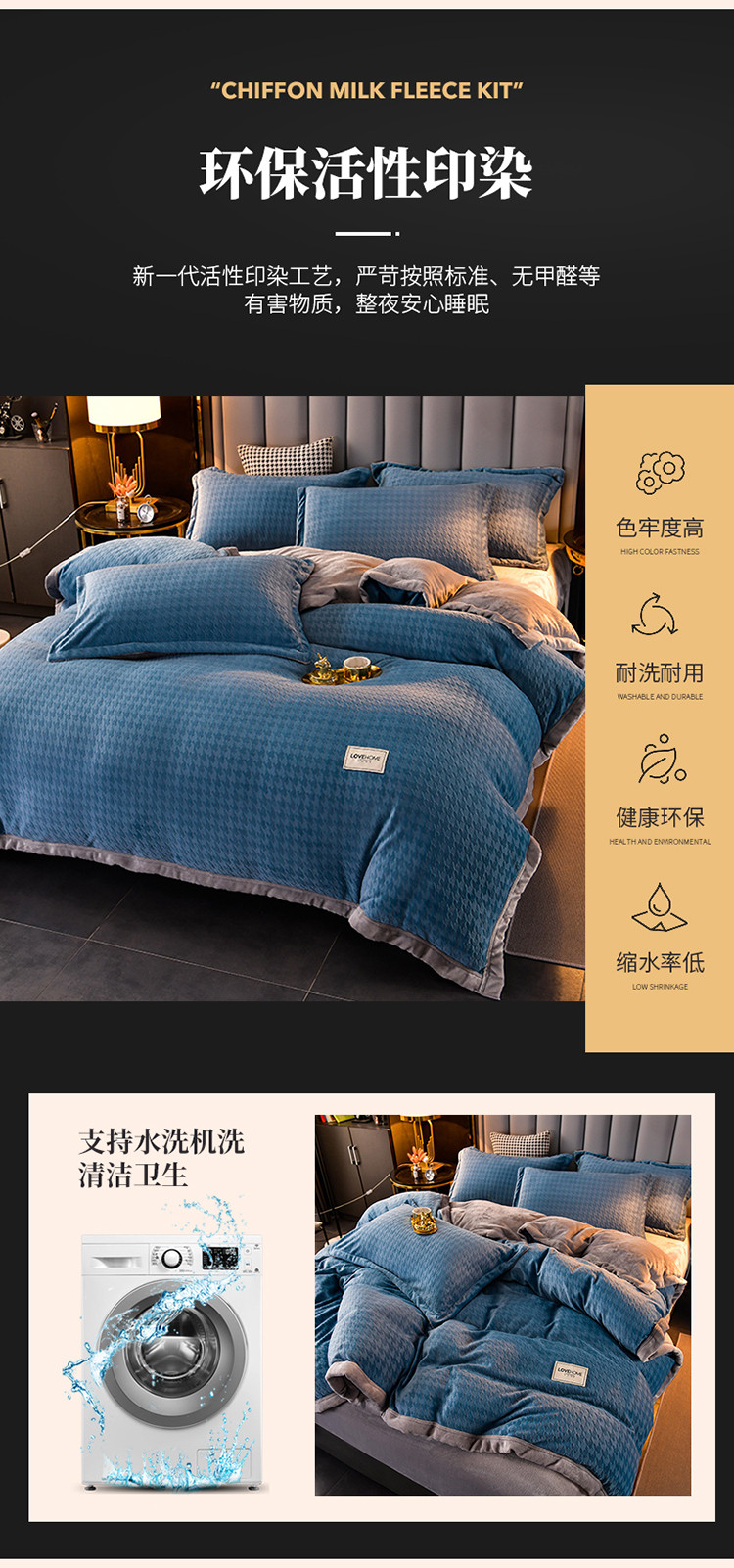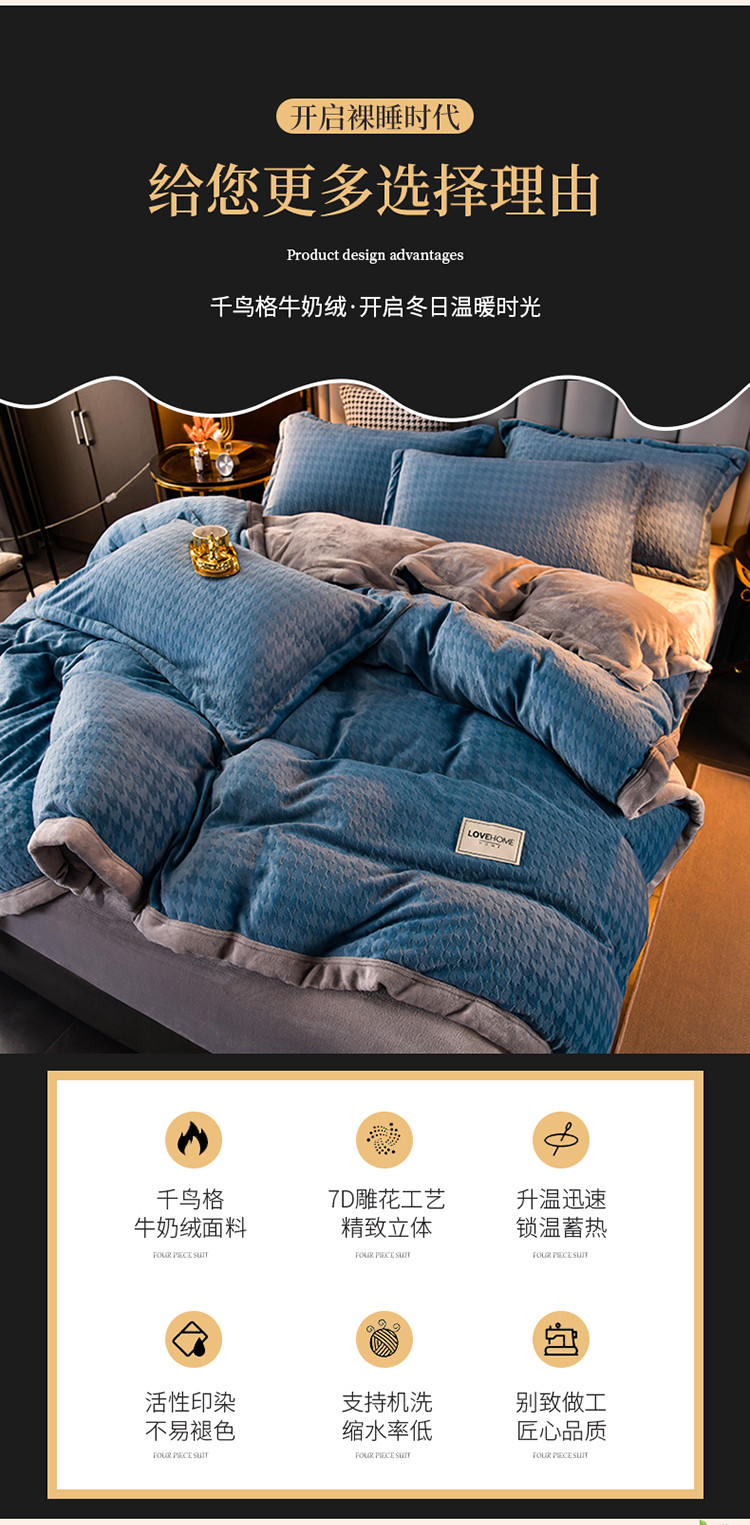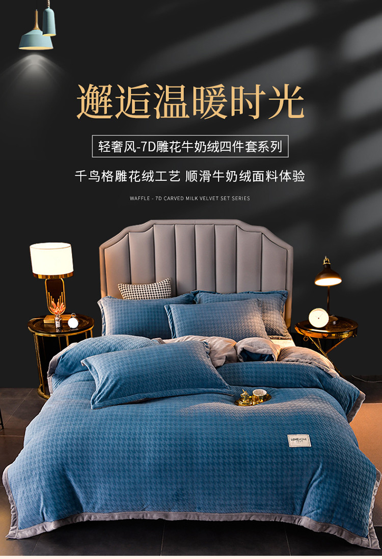 当前位置: 91家纺网 > 商品网购 > 床品套件 > 四件套 > 牛奶绒四件套 > 小牛席业 2022新款雕花牛奶绒四件套 千鸟格牛奶绒(蓝色)