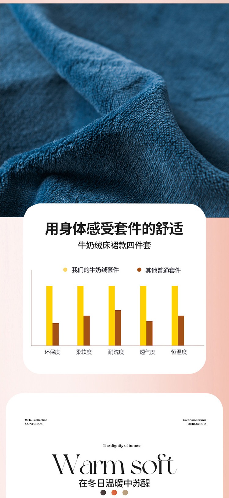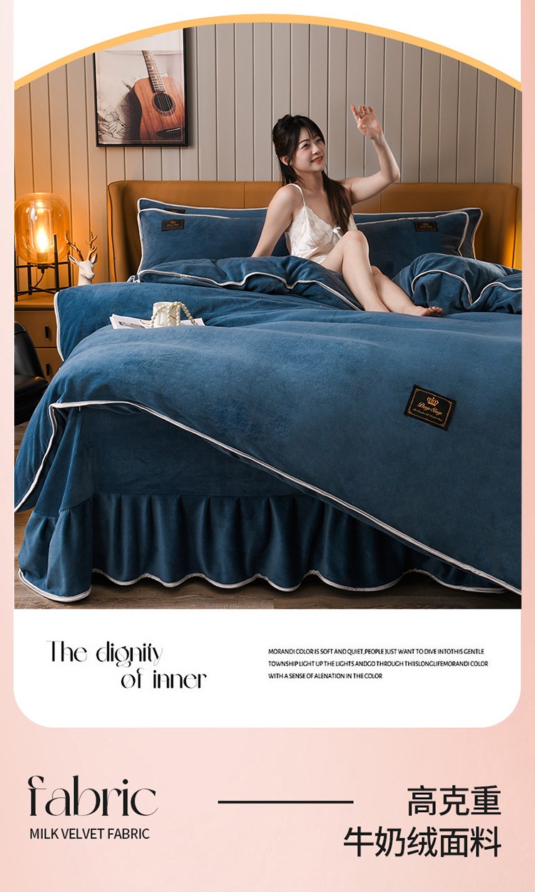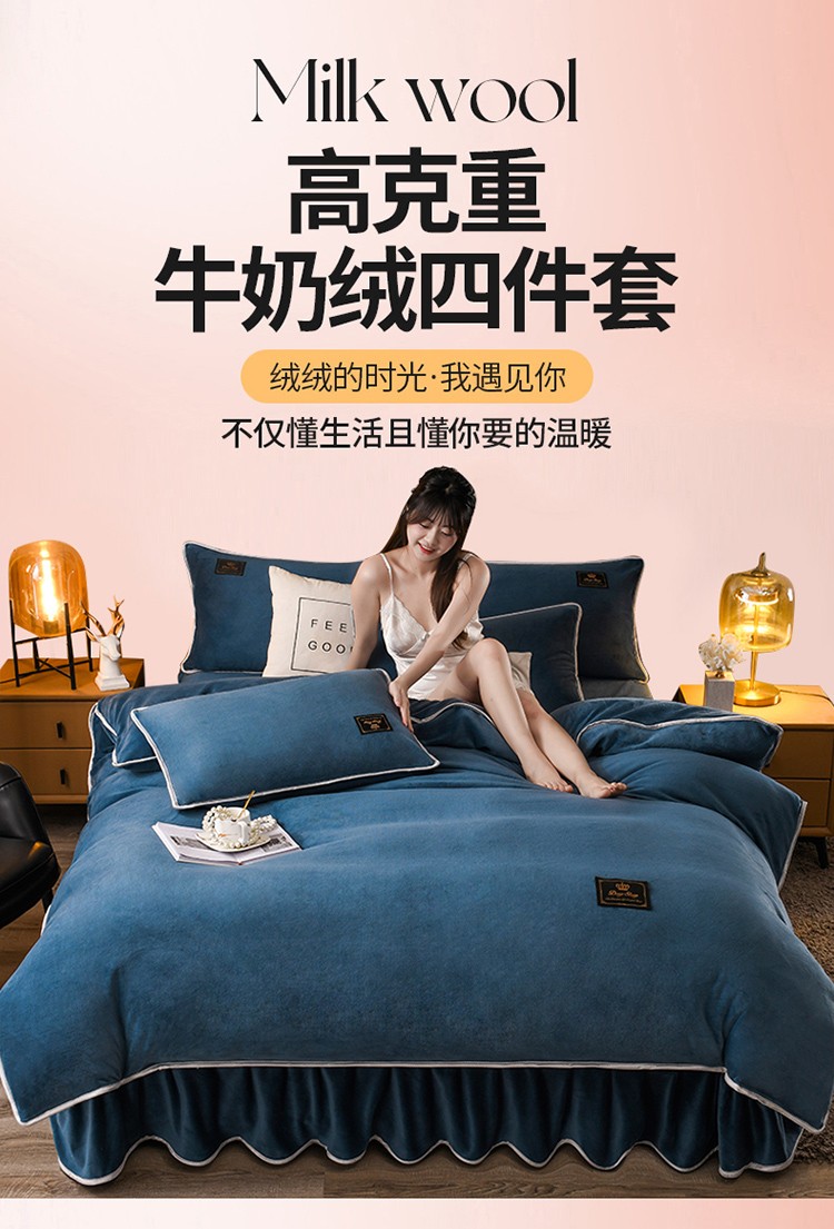 商品名称:德比尔斯 2025新款8.5斤床裙款高克重纯色牛奶绒四件套宾利蓝